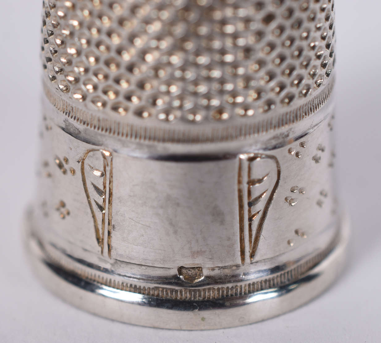 Duas pequenas peças, sendo sinete de prata 800 mls constrastada e dedal de metal. (Por questão de segurança a peça nã...