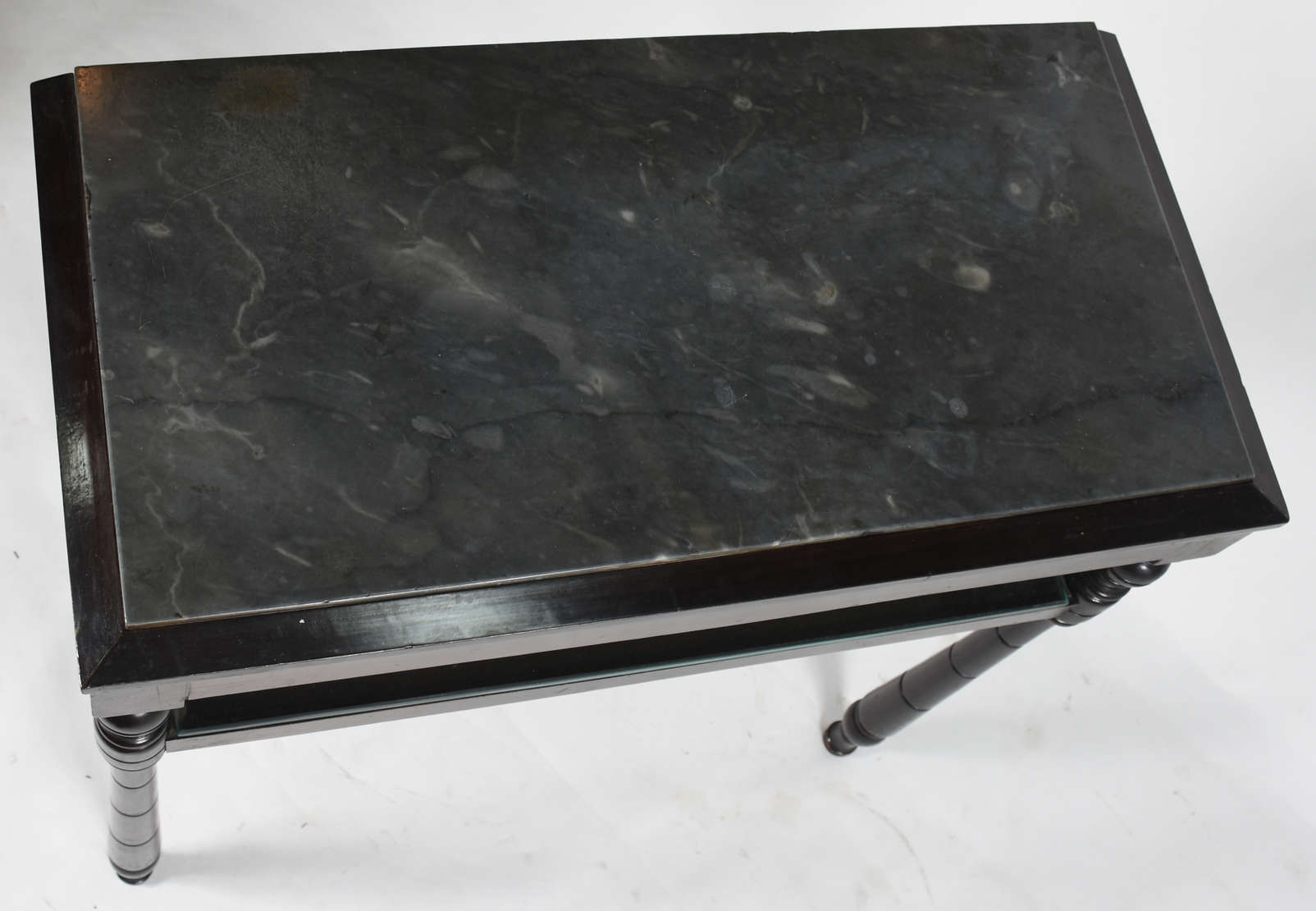 Aparador em madeira nobre tampo recortado. Pernas recurvas se unindo por travessões e pino central