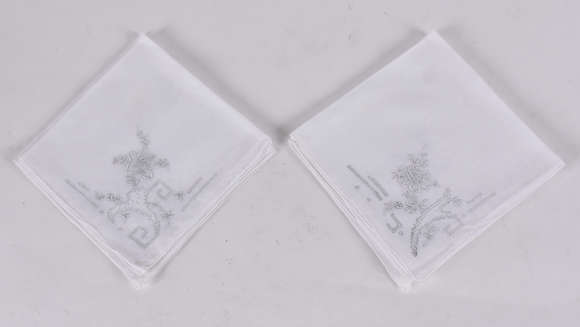 Seis lenços para noivas de linho branco bordados à mão.