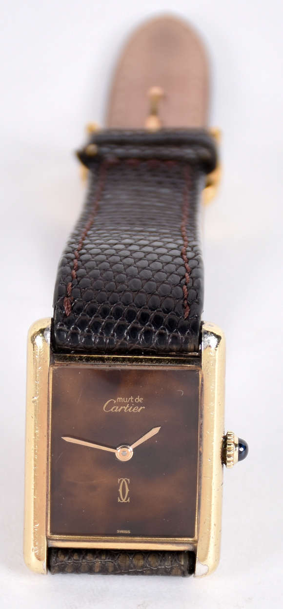 Relógio de pulso Cartier, prata 925 e plaque d'or 20M, pulseira original, de corda. (Por questão de segurança a peça...