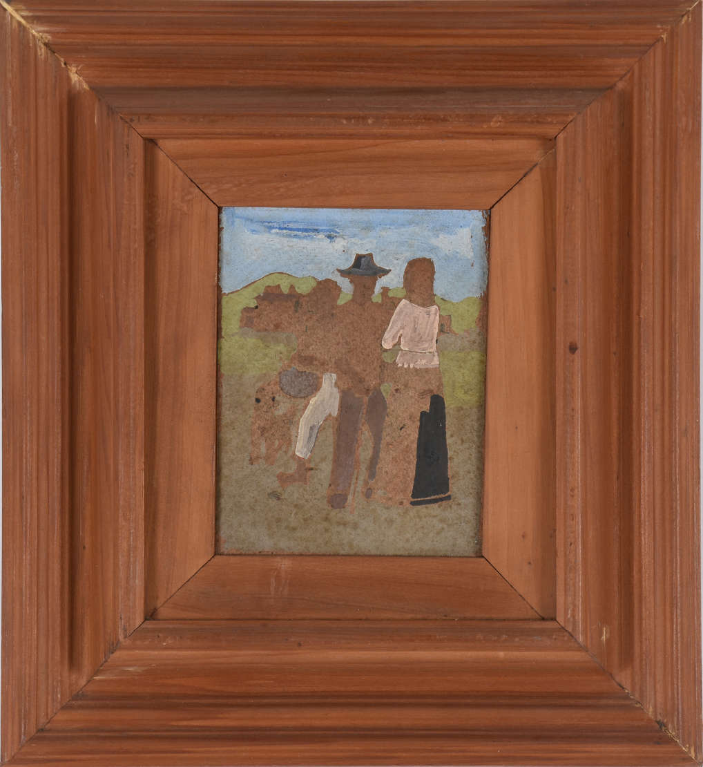 Par de quadros com figuras de jovens, molduras douradas. (medidas com as molduras)