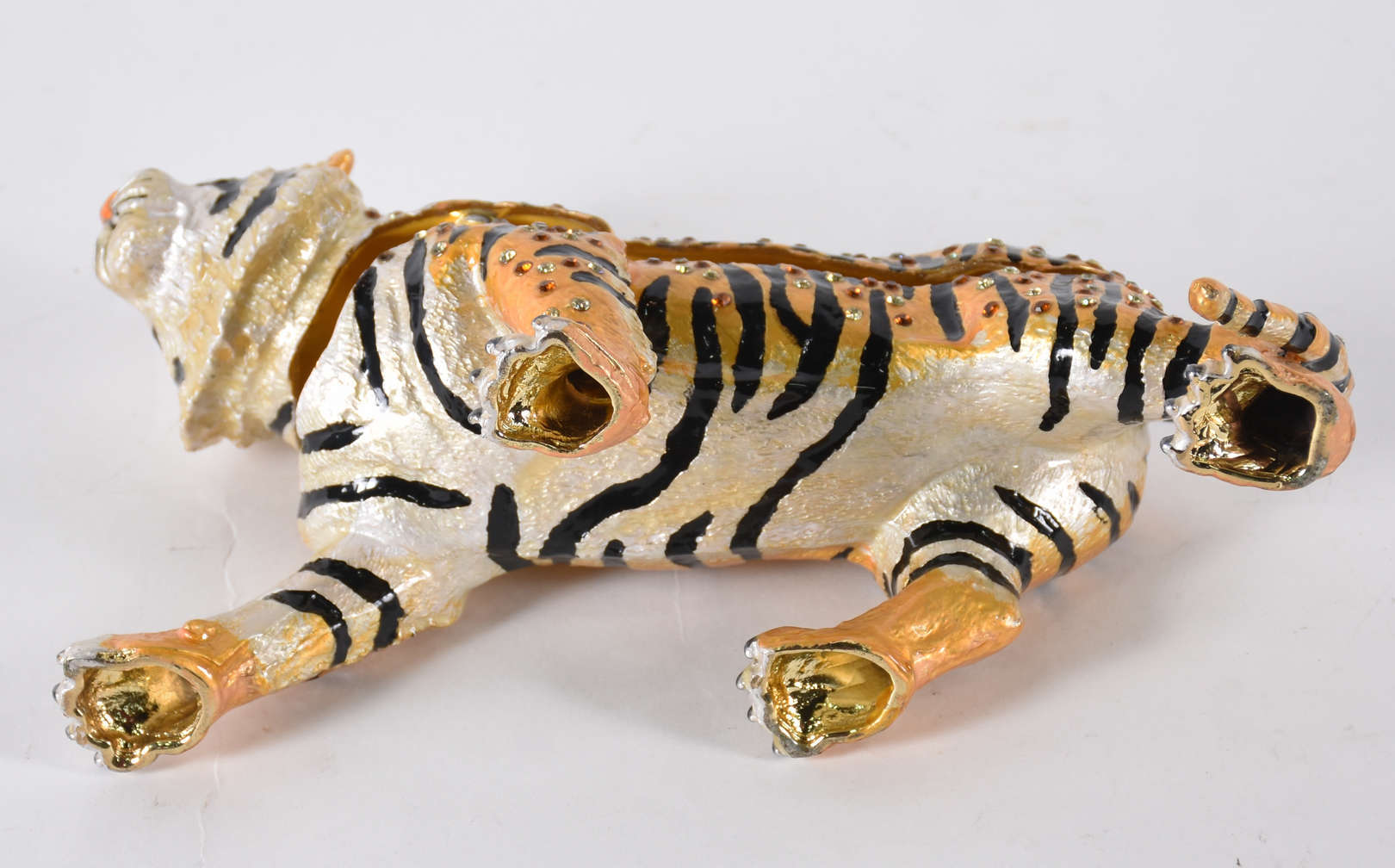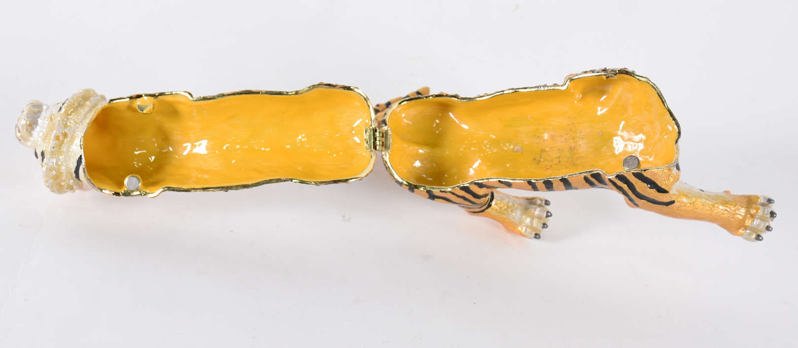Tesoura de cortar unhas com detalhes banhados a ouro, acondicionada em estojo de porcelana francesa (com fio de cabelo).
