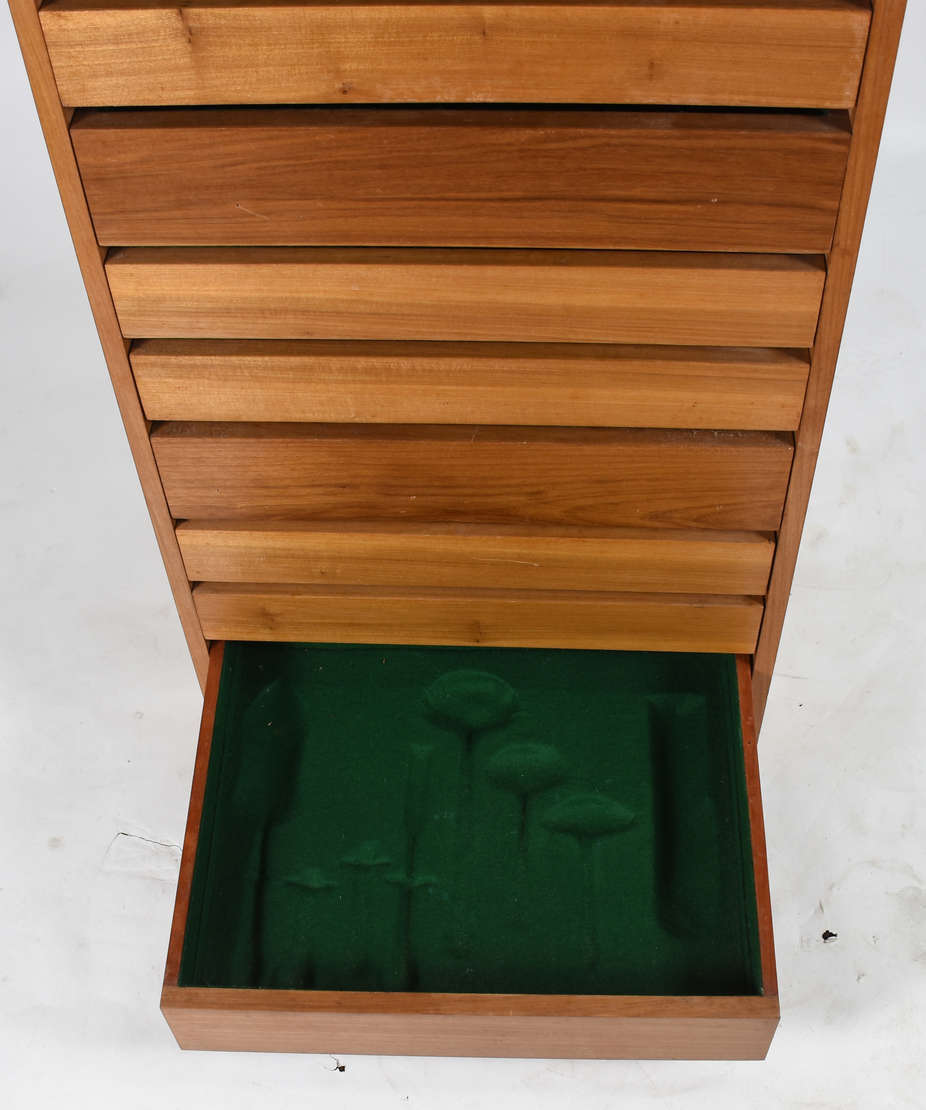 Móvel porta bibelot de madeira nobre, com platôs ligados por colunas torneadas. (de prender na parede). Dividido em d...