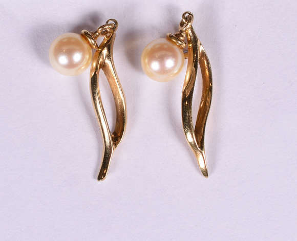 Par de brincos de ouro amarelo 18 k e duas pérolas. (Por questão de segurança a peça não se encontra na loja).