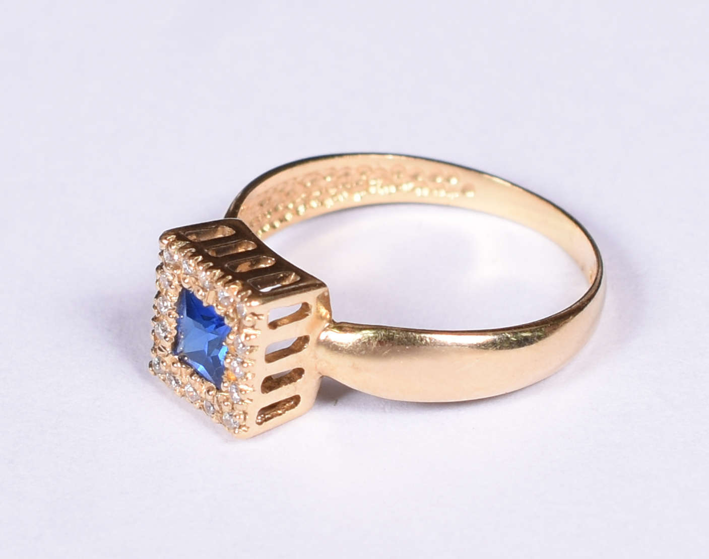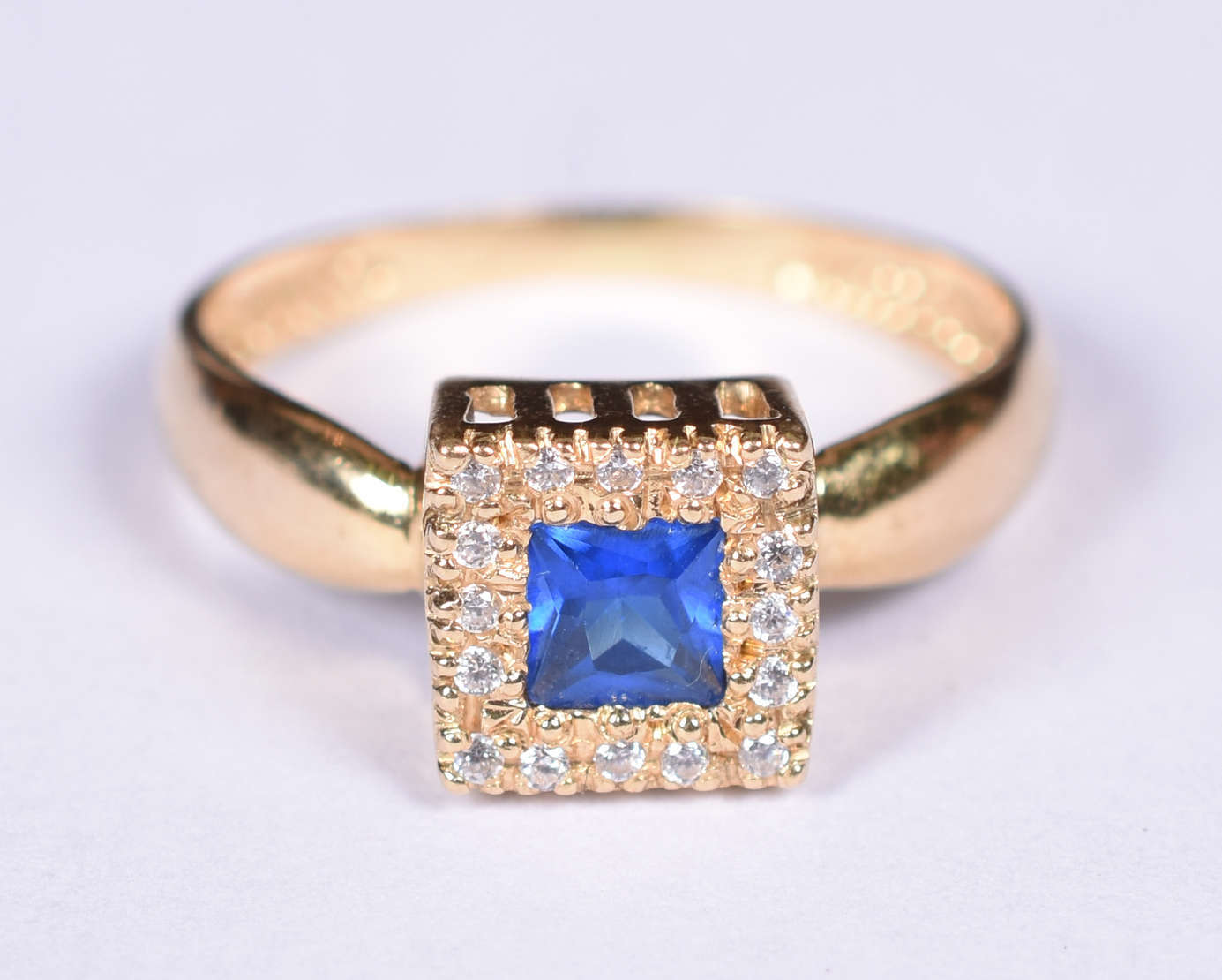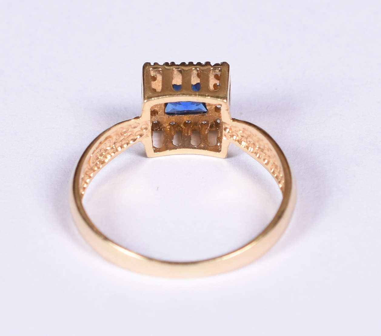 Antigo anel de ouro 18 k , platina, 12 brilhantes, safira azul. Aro 16. (Por questão de segurança a peça não se enco...