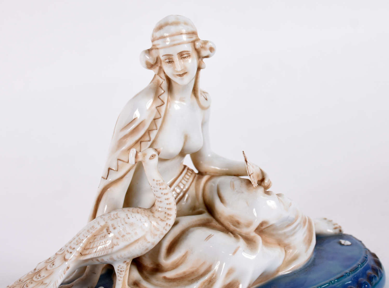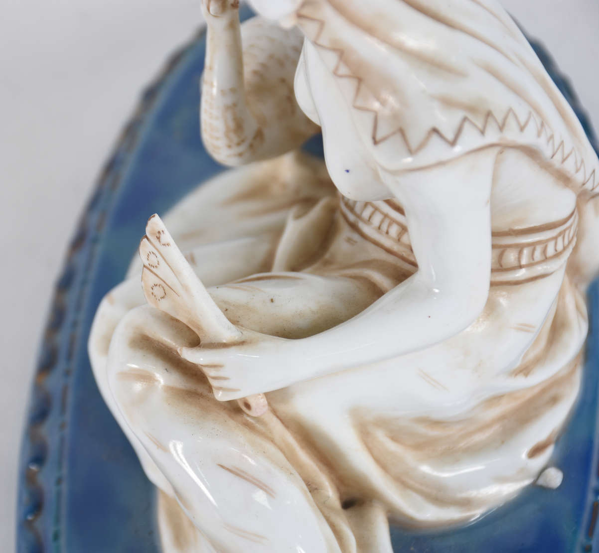 Relógio de mesa de bronze com figura feminina e base de mármore.