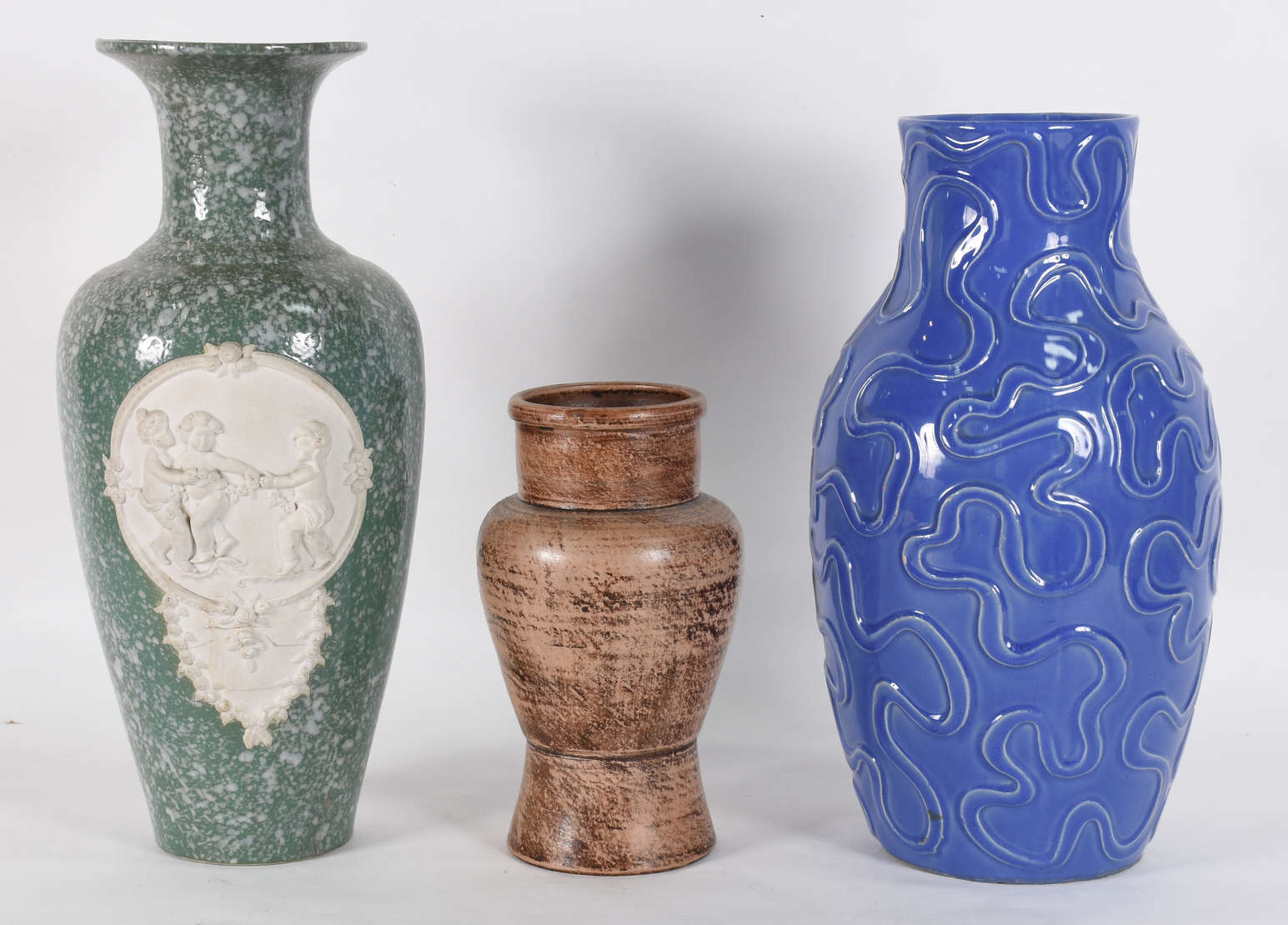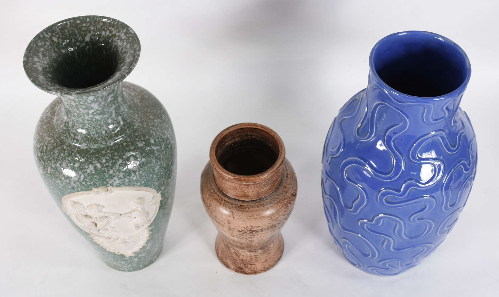 Tres peças sendo, 1 floreira Luiz Salvador e 2 pratos de porcelana (1 oval e 1 redondo).