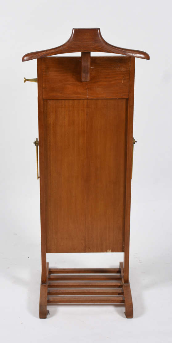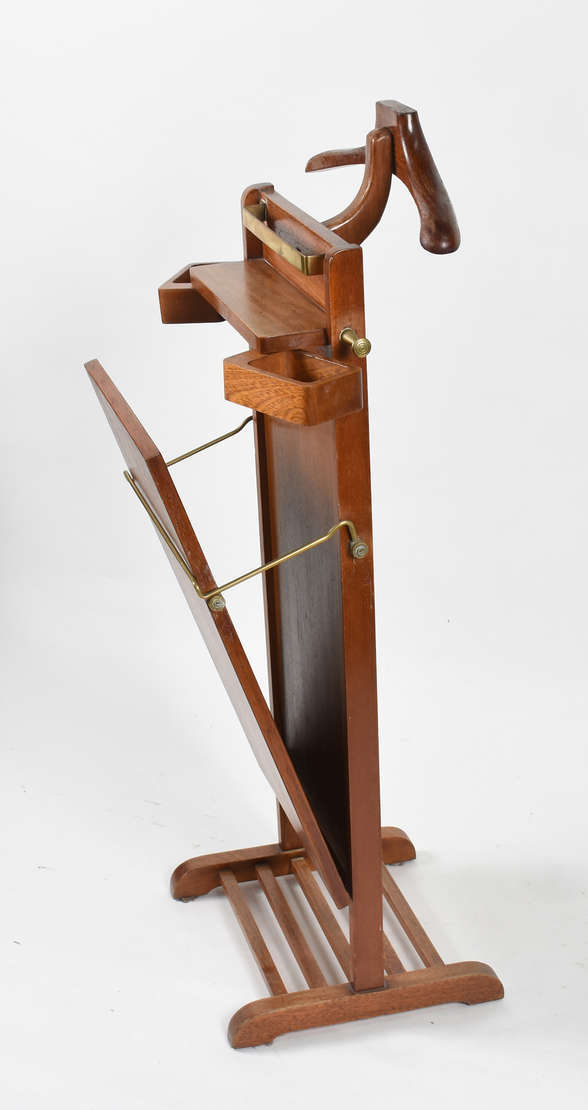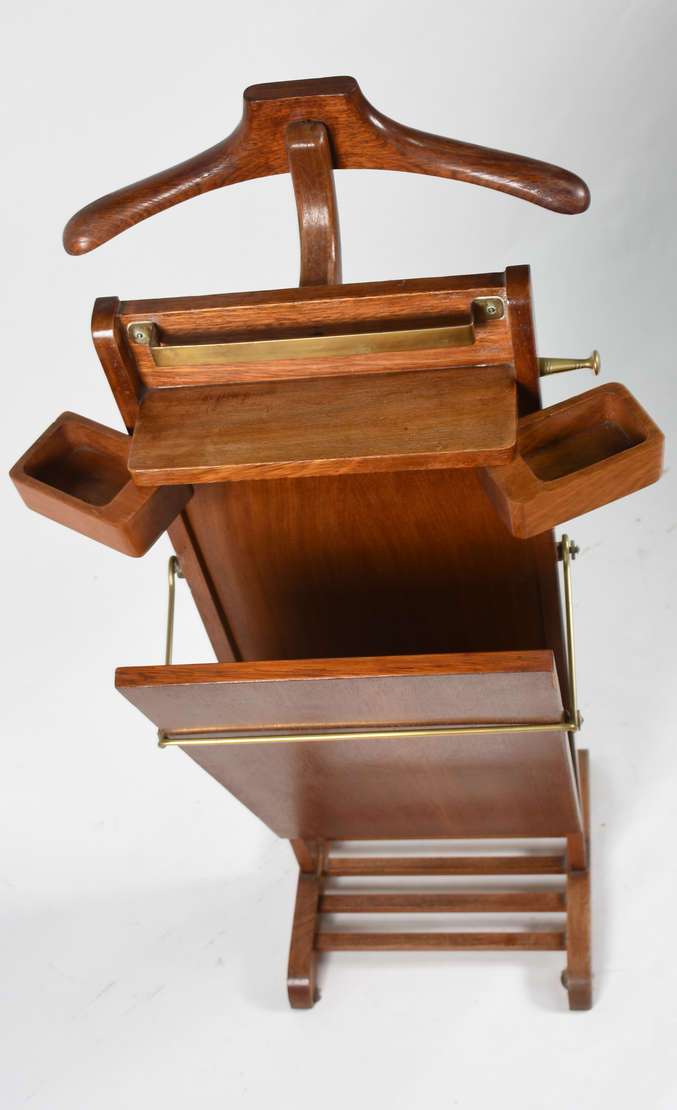 Aparador em madeira nobre tampo recortado. Pernas recurvas se unindo por travessões e pino central