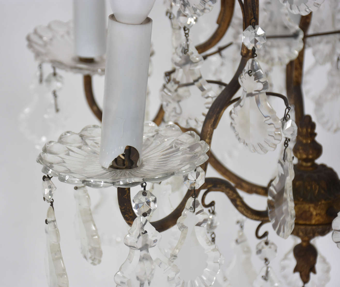 Lustre de bronze com cúpula de opalina. Altura total 110