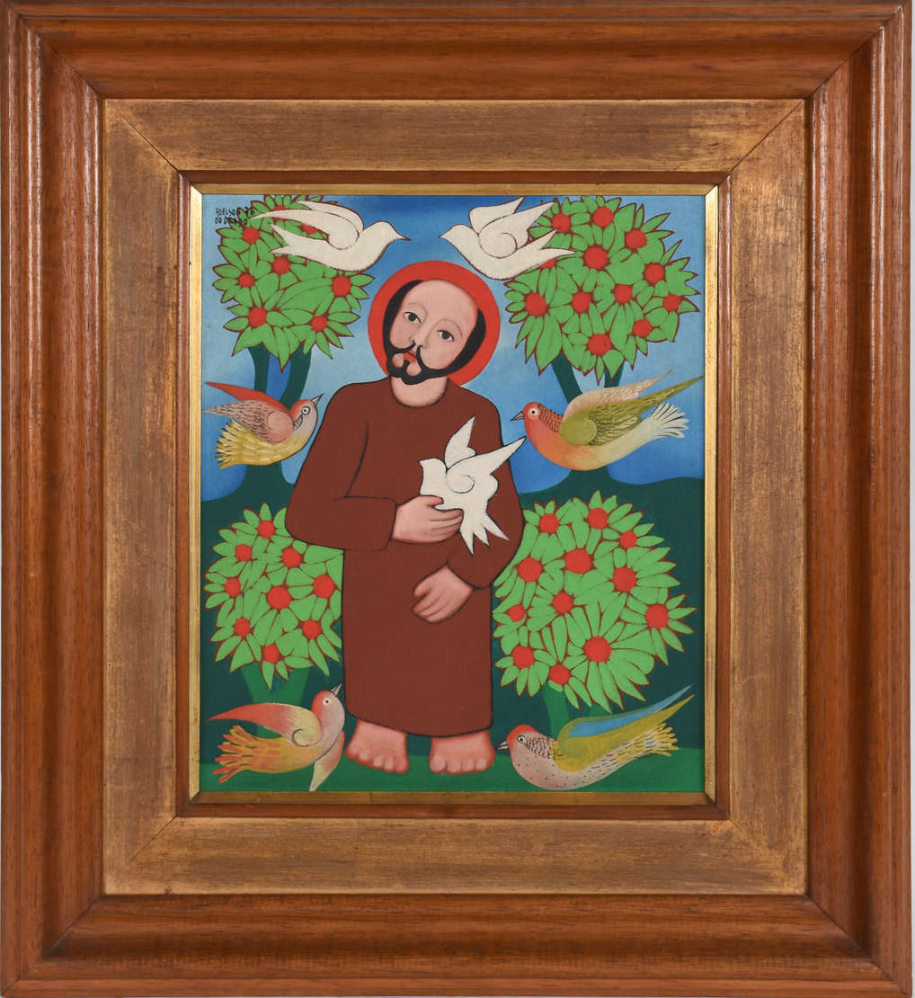 Moldura dourada com folhas em relevo. (pequenas partes faltando)