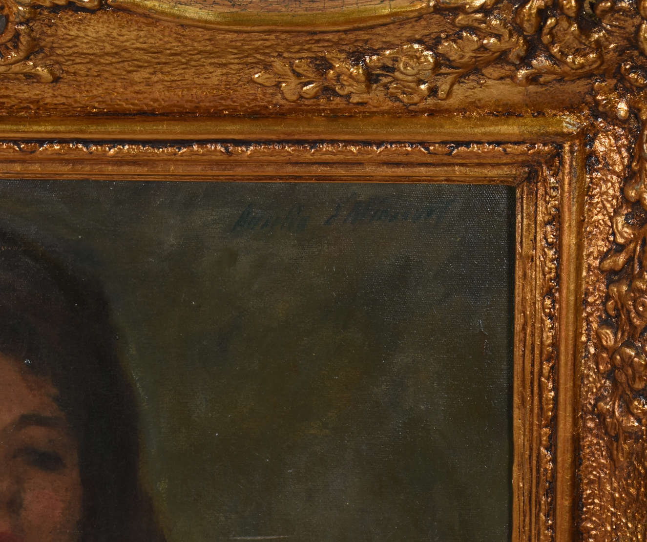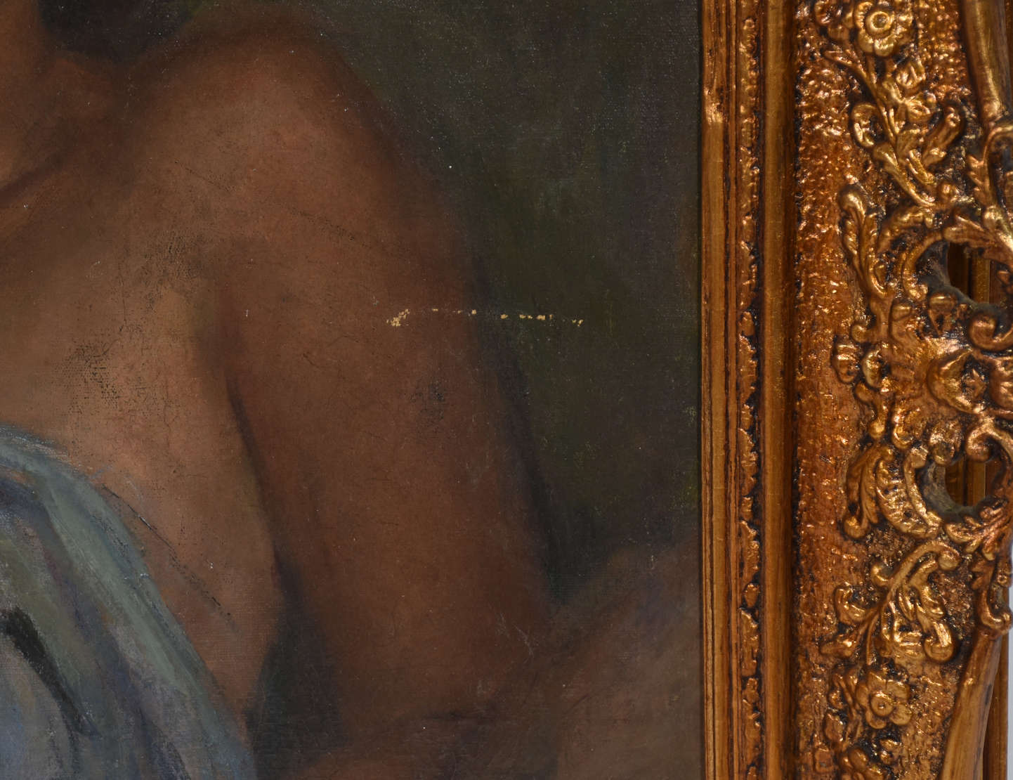 Moldura dourada com folhas em relevo. (pequenas partes faltando)