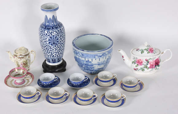 Diversas peças, sendo 6 xícaras para café com pires de porcelana japonesa (uma com fio de cabelo); 2 xícaras azul e b...