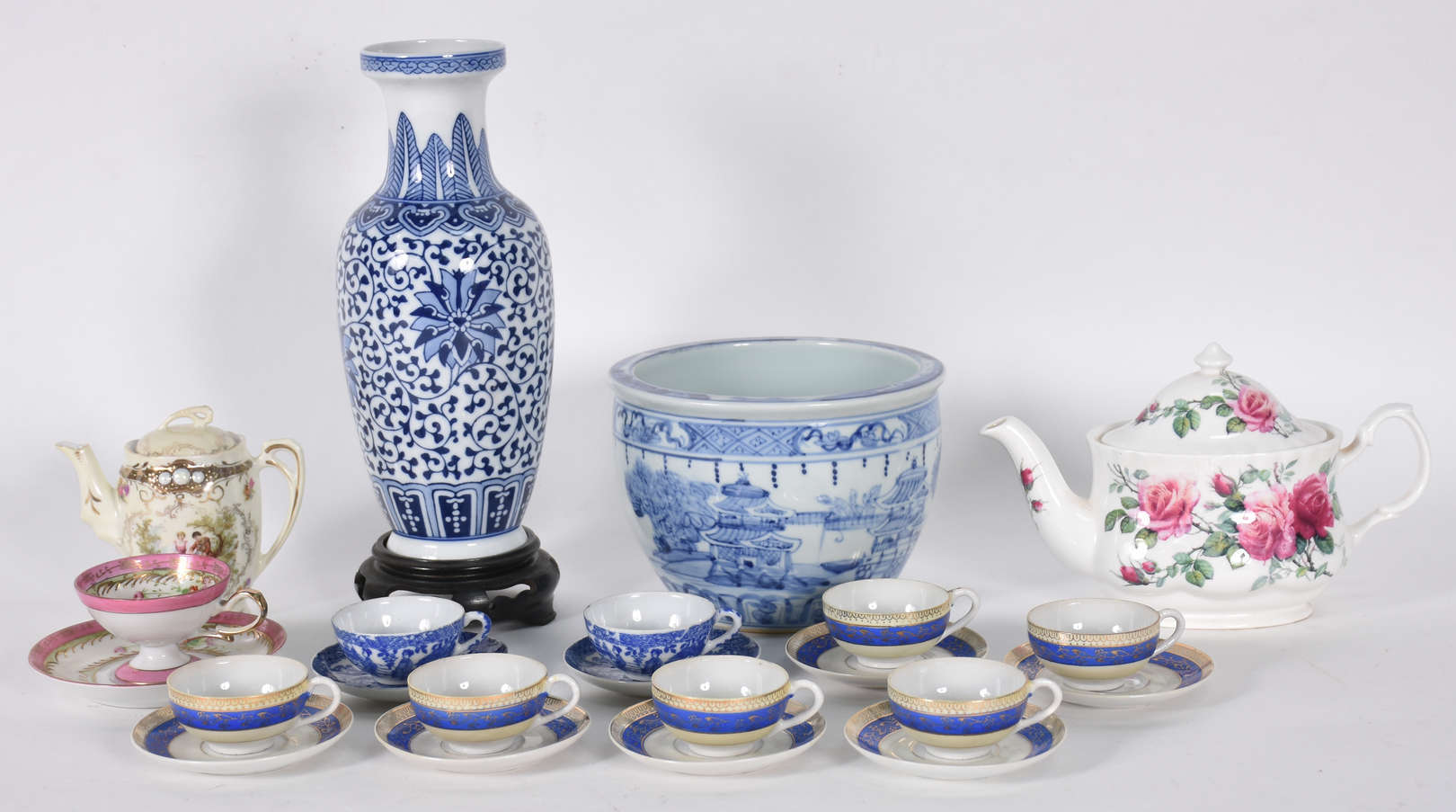 Aparelho de jantar de porcelana Rosenthal, cor branca com borda azul cobalto e dourado, composto de 48 pratos rasos, ...