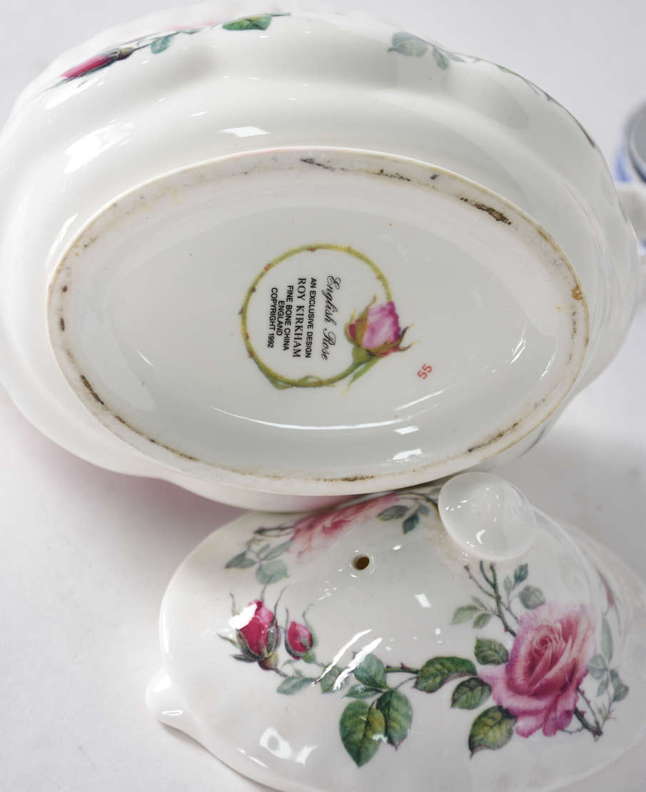 Aparelho de jantar de faiança inglesa, decoração floral em policromia, composto de: 24 pratos rasos (14 com craquelê)...