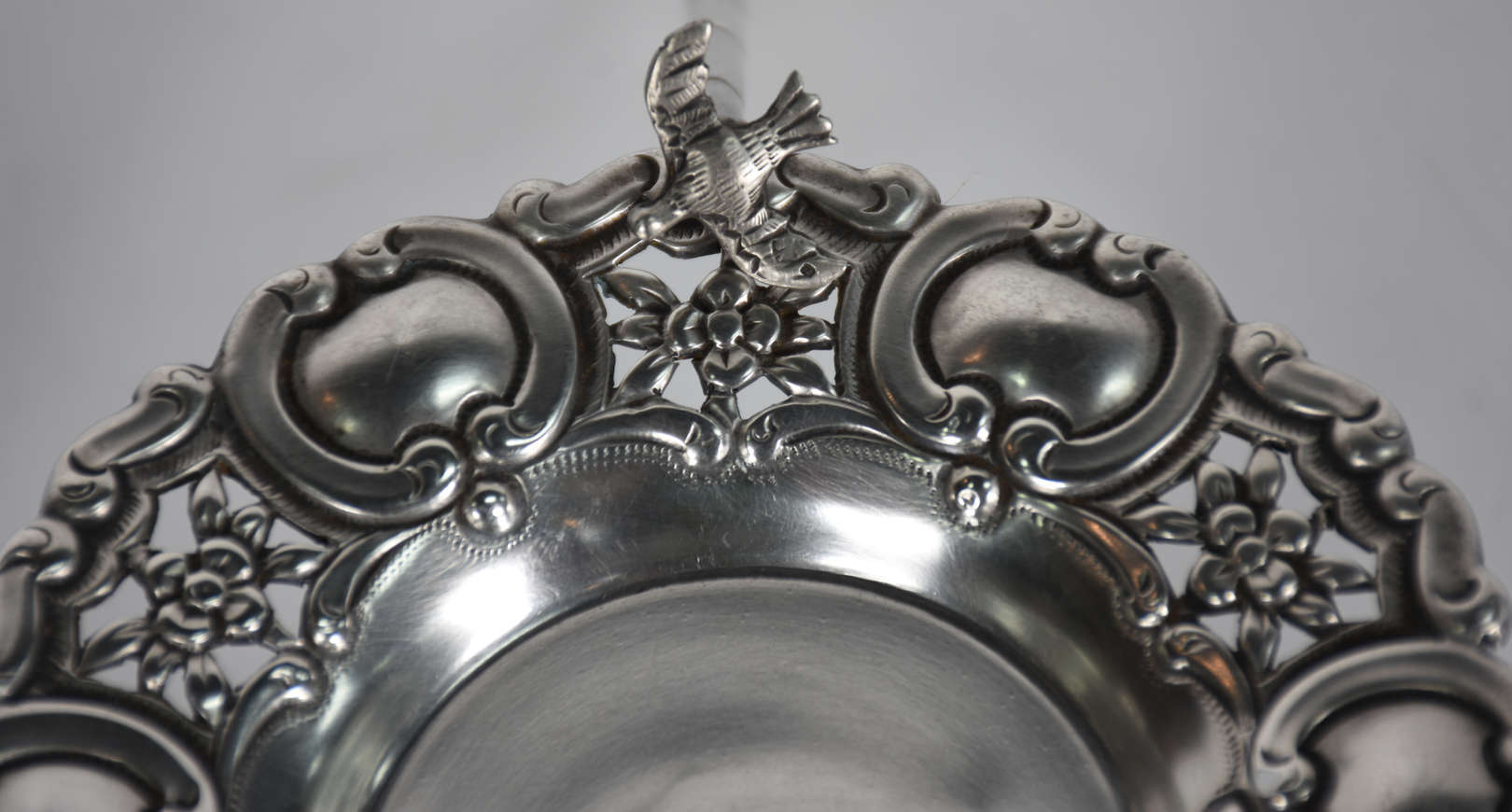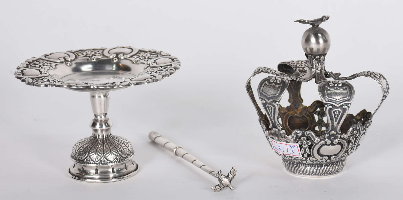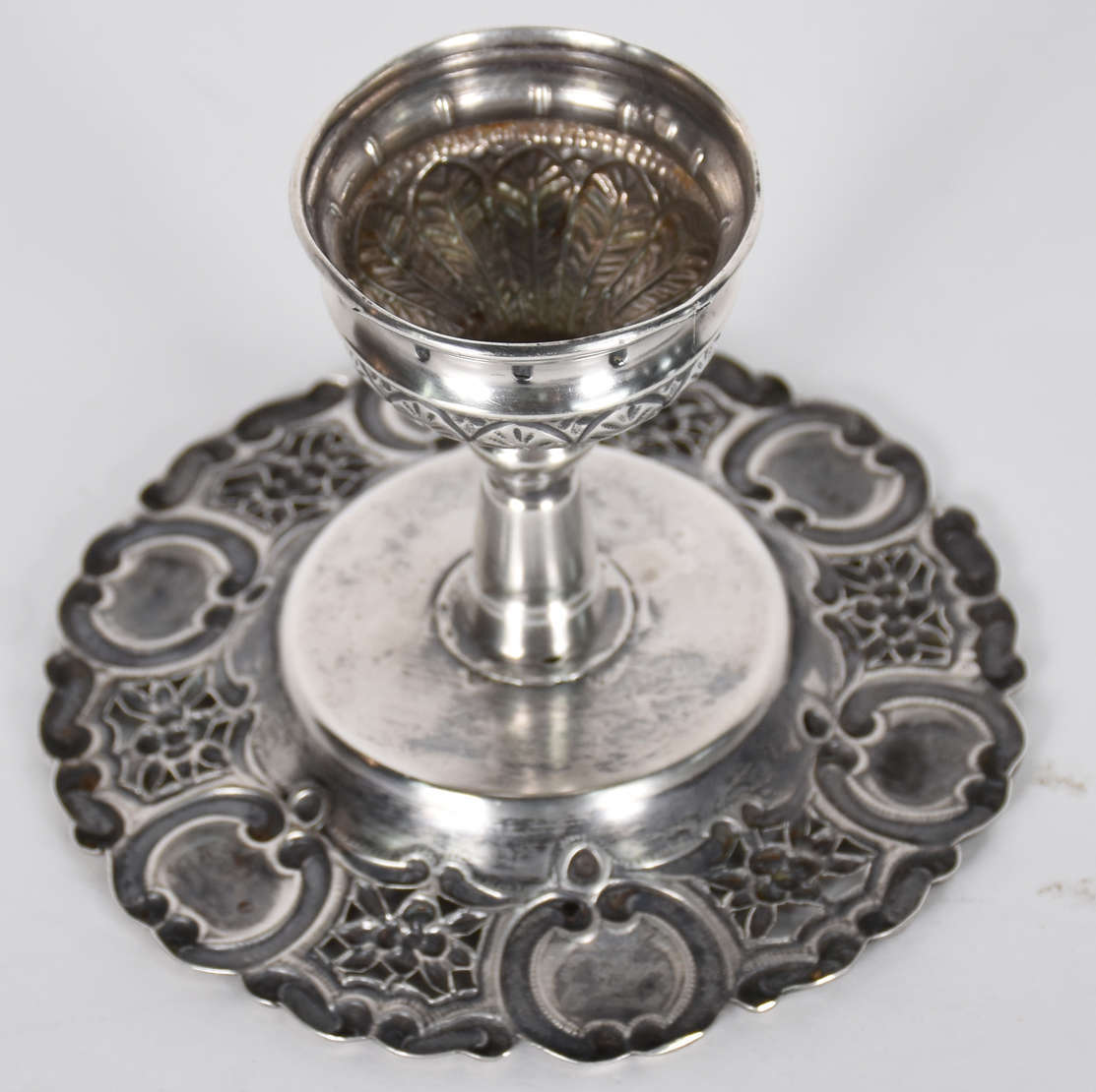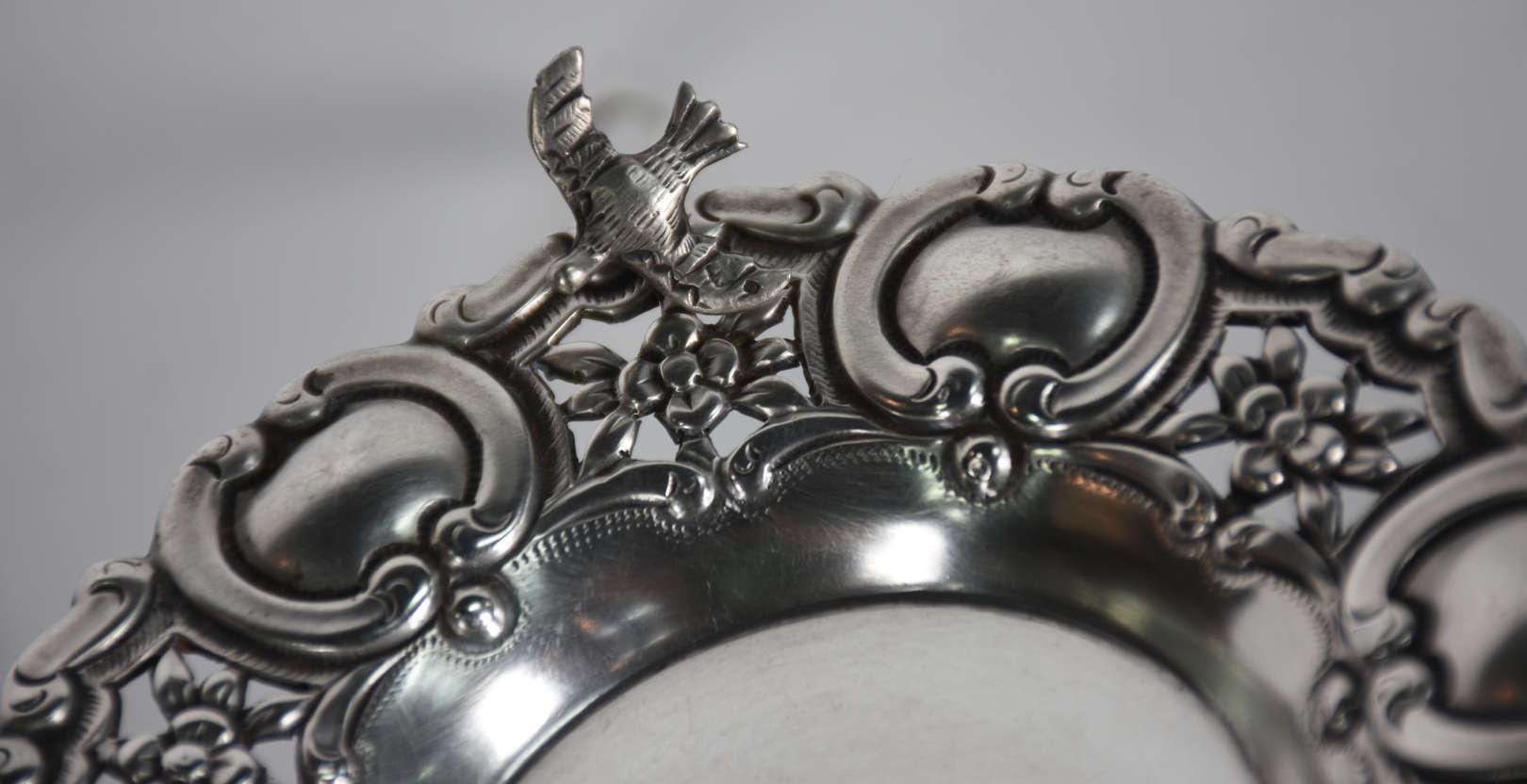 Naveta de prata portuguesa contraste P Coroa, ricamente trabalhada com folhagens em relevo cinzelado. Século XIX.