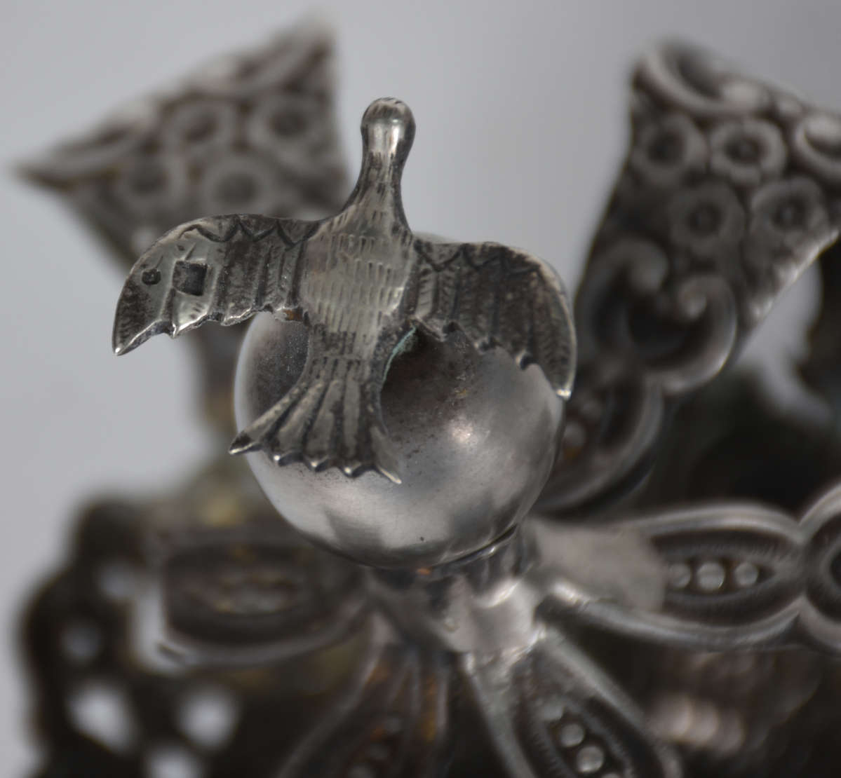 Tinteiro de metal prateado alemão WMF com figura de avião ao centro (faltando os recipientes de tinta).