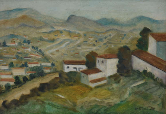 par de aquarelas - uma delas datada 1979 - passepartouts manchados.