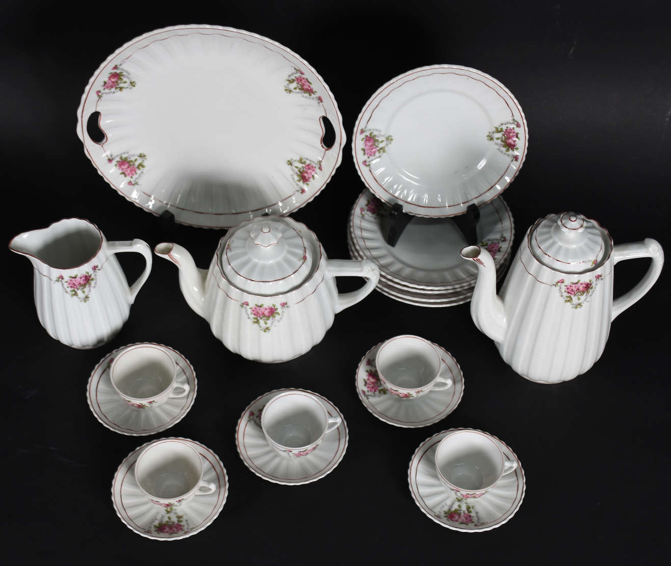Aparelho de jantar de porcelana Renner, composto de 20 pratos rasos, 19 pratos de sobremesa e 5 pratos fundos. Total ...