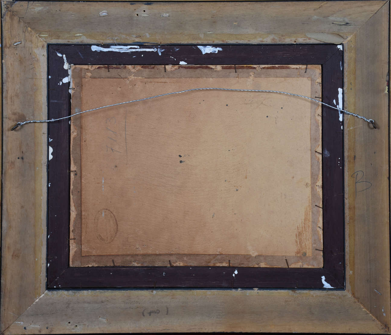 Moldura dourada com folhas em relevo. (pequenas partes faltando)
