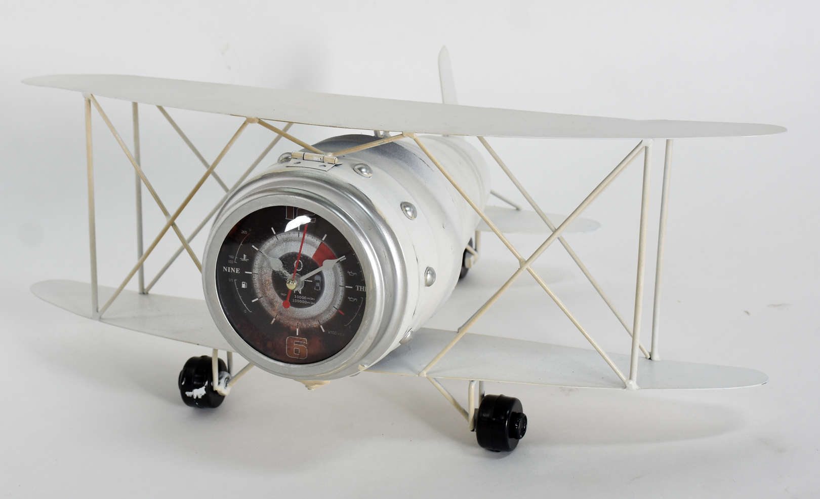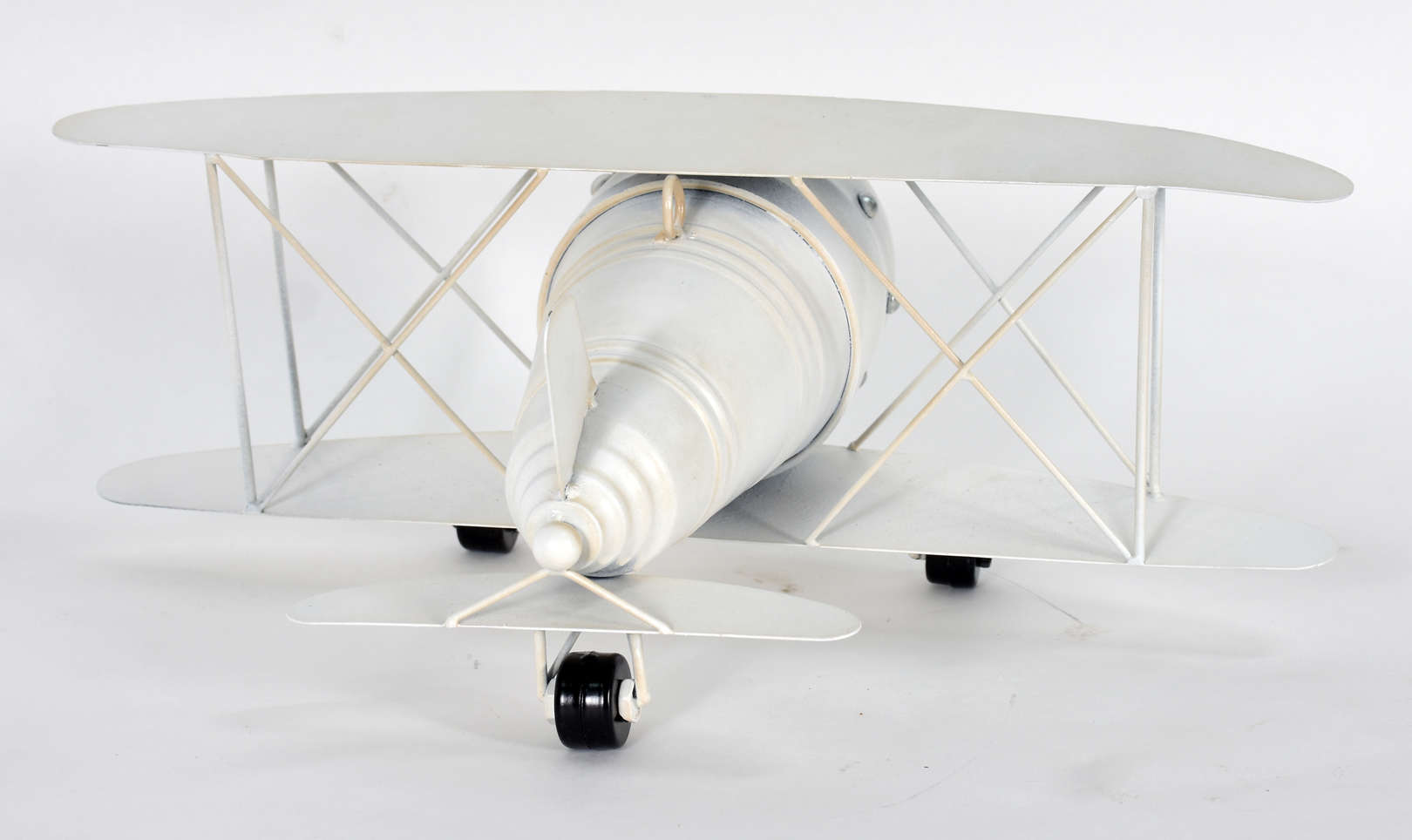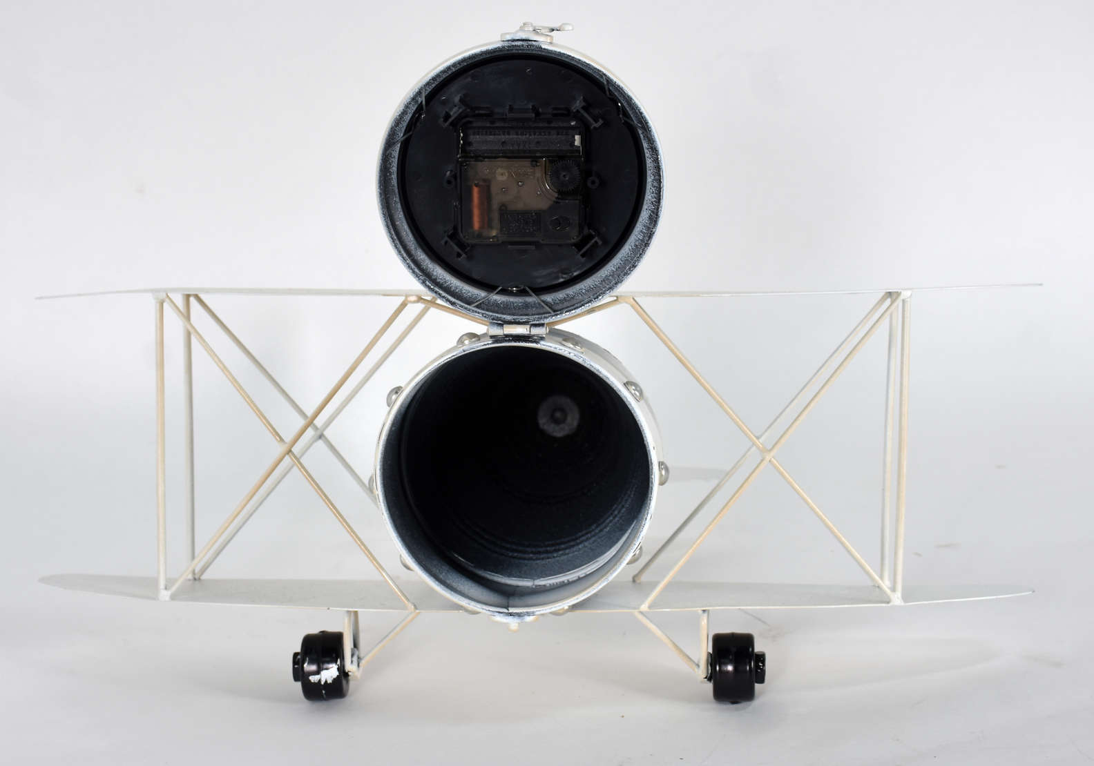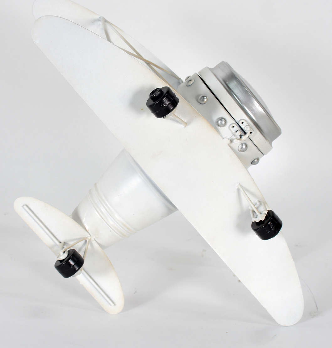 Tinteiro de metal prateado alemão WMF com figura de avião ao centro (faltando os recipientes de tinta).