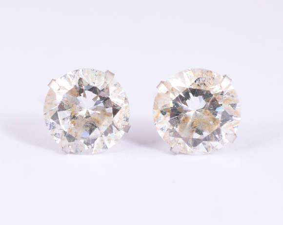 Par de brincos de ouro branco com 2 safiras brancas. (por questão de segurança a peça não se encontra na loja).