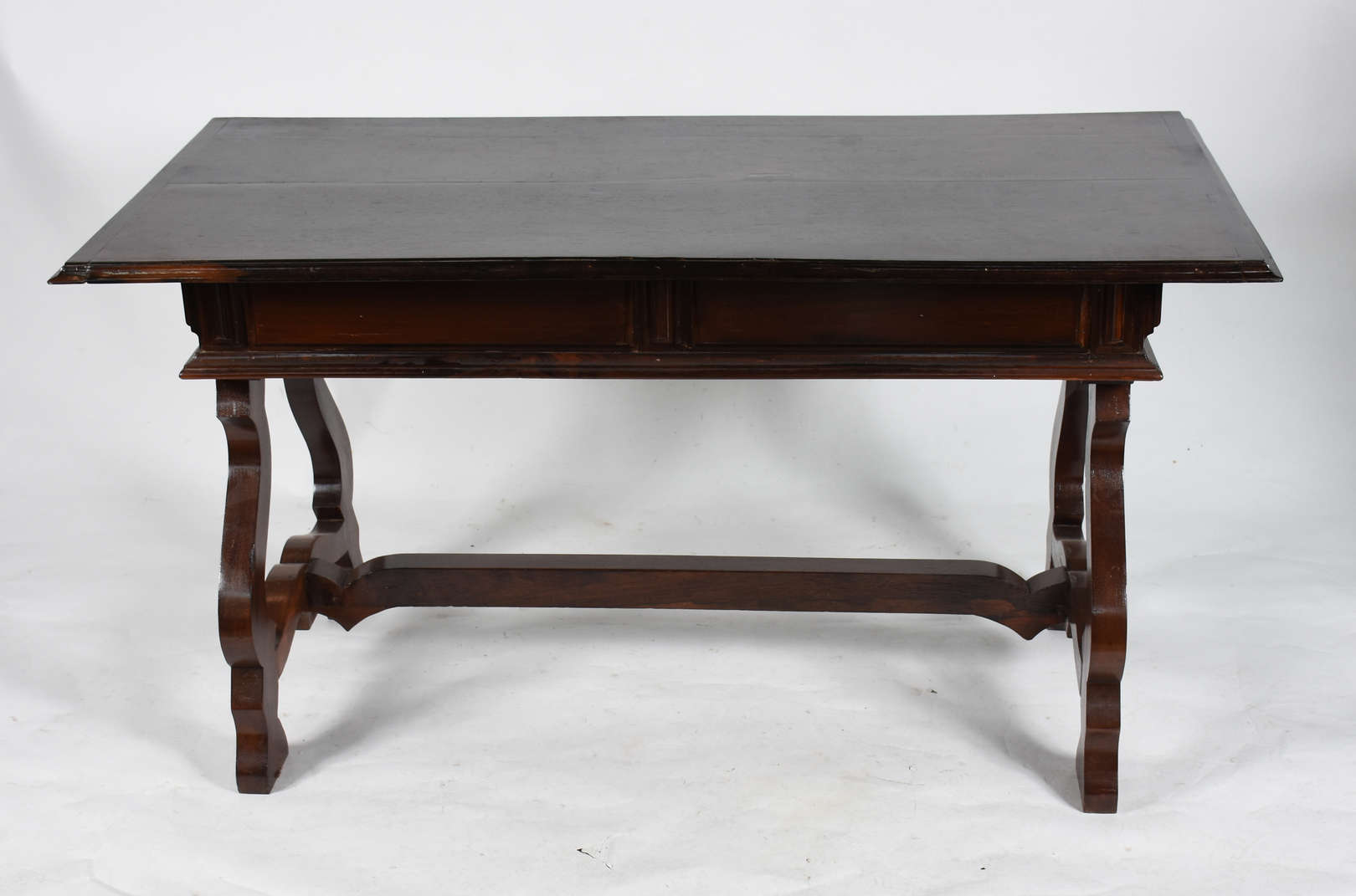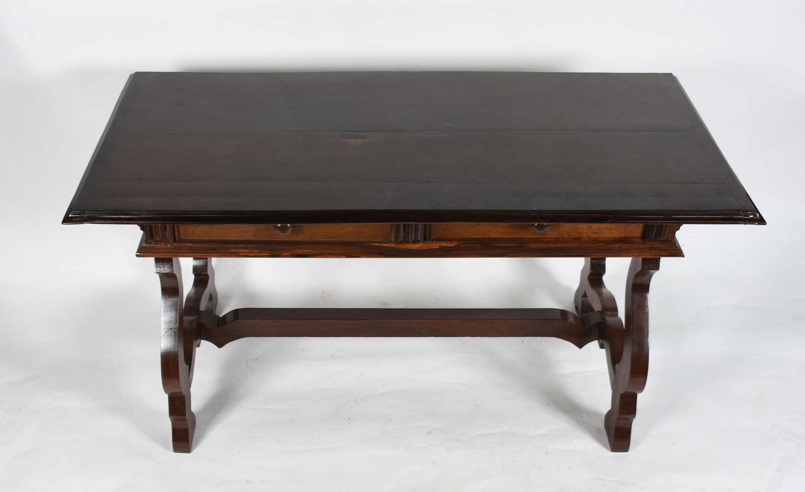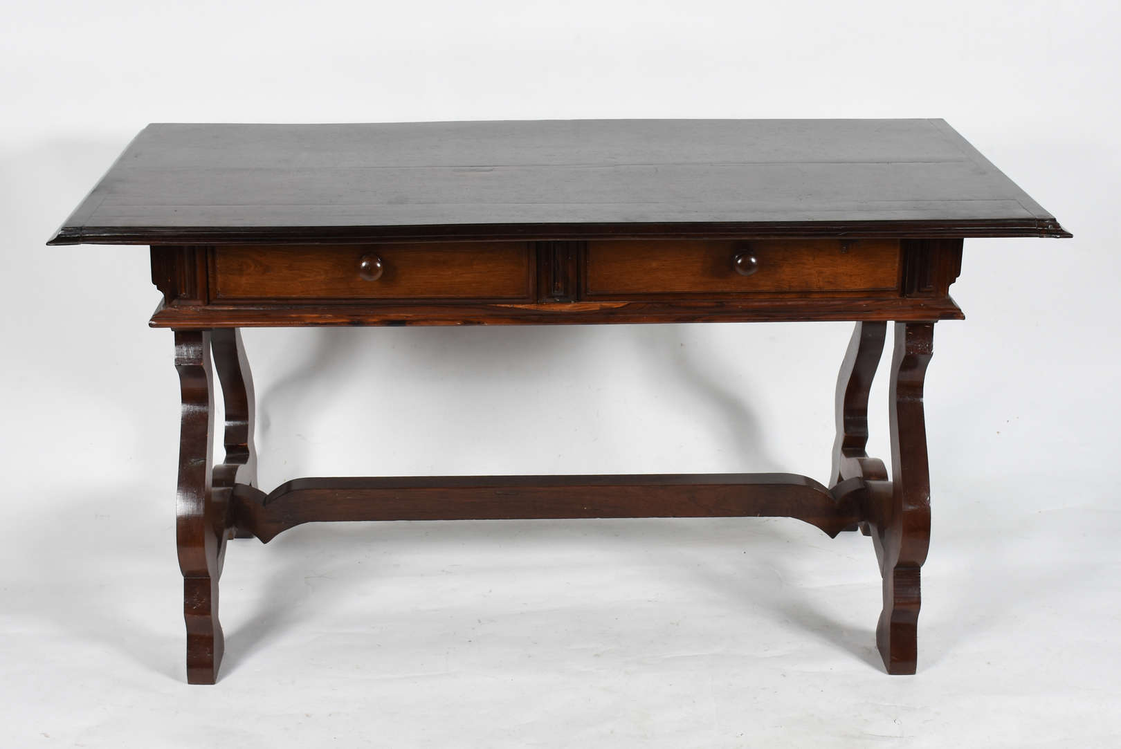 Escrivaninha de jacarandá com 2 gavetas (folheado soltando nas gavetas).
