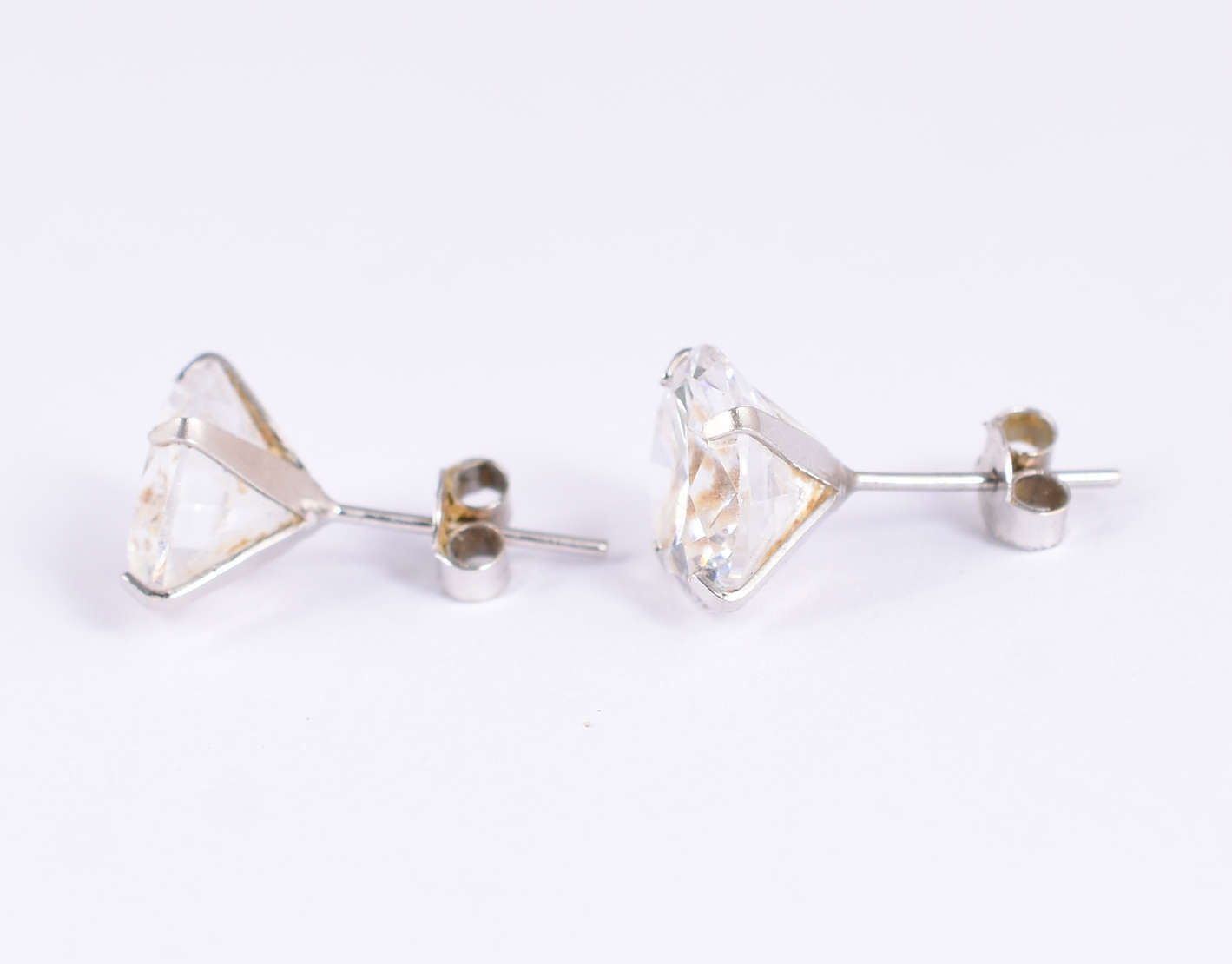 Par de brincos com ametistas e 2 brilhantes de aprox. 0,40 pontos total. Cor " GH " Pureza " VS " . Formato de flor e...