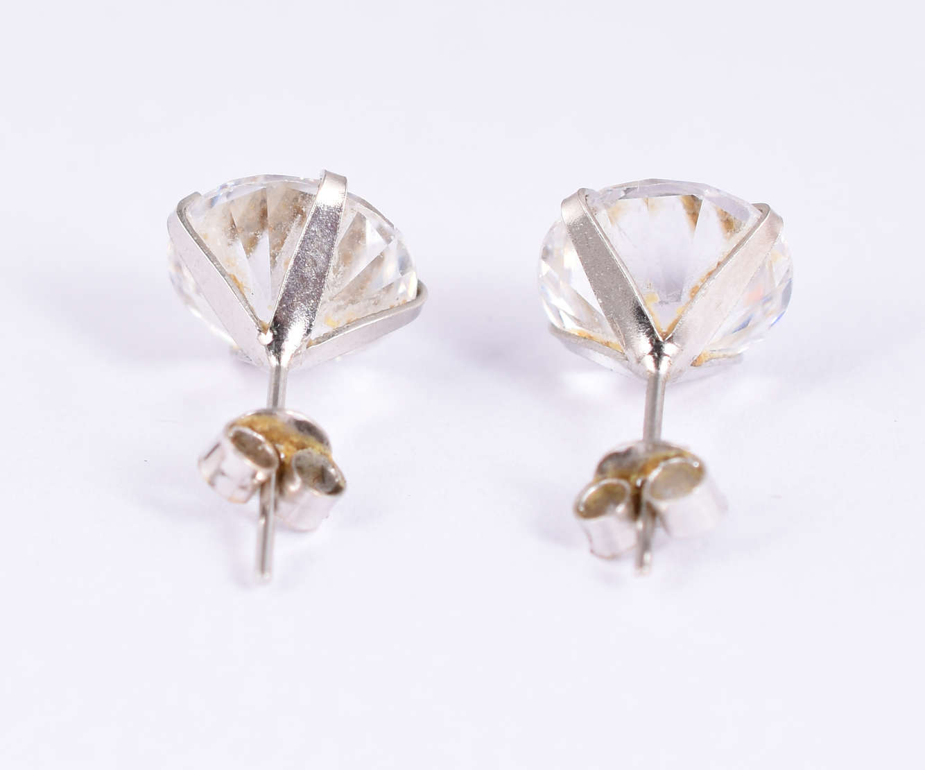 Par de brincos tipo gota, com 2 safiras azuis, variadas safiras brancas. (por questão de segurança a peça não se enco...