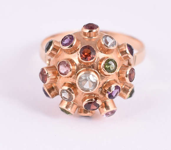 Anel de ouro amarelo 18 k com brilhantes minúsculos, aro 20. (por questão de segurança a peça não se encontra na loja).