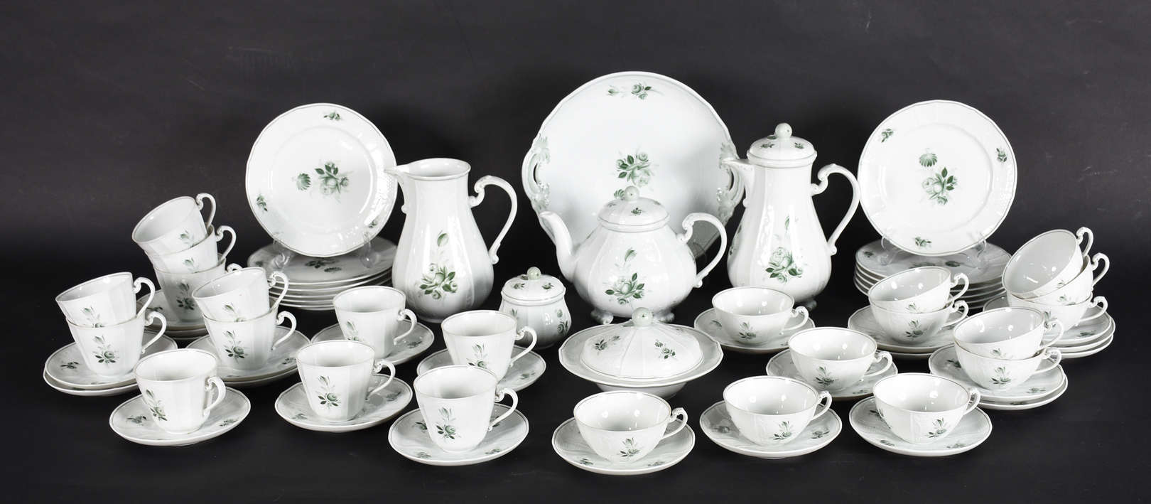 Serviço de jantar de porcelana branca Bavaria composto de 23 pratos rasos, 23 pratos de sobremesa, 7 pratos fundos, ...