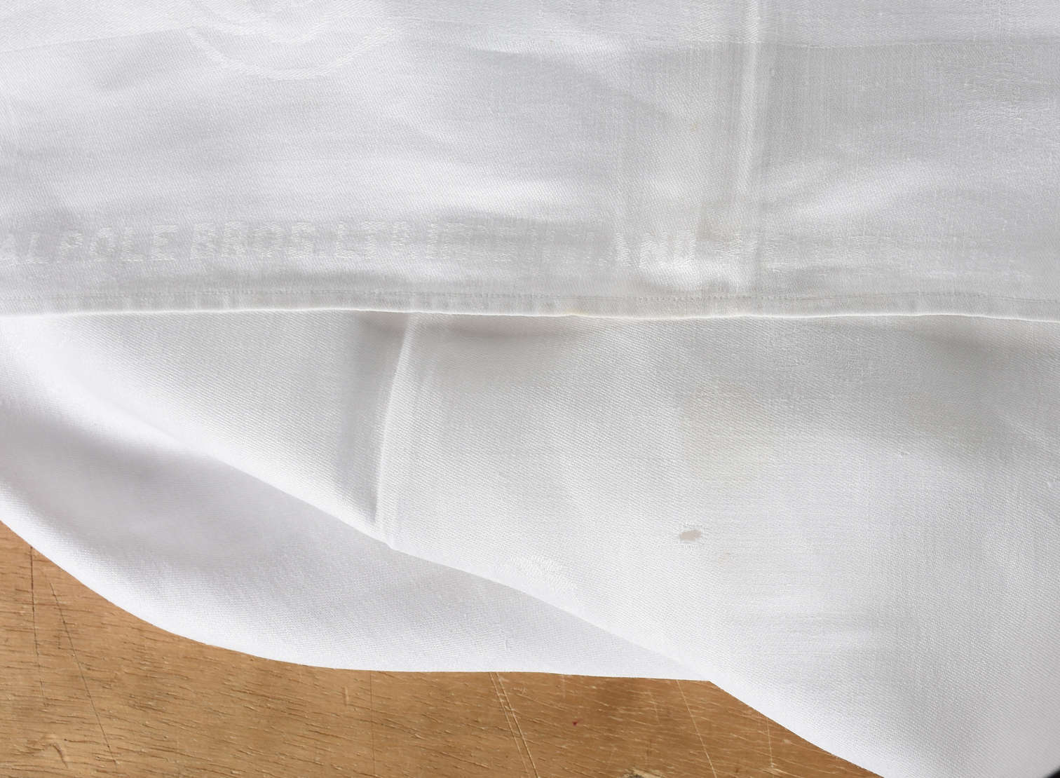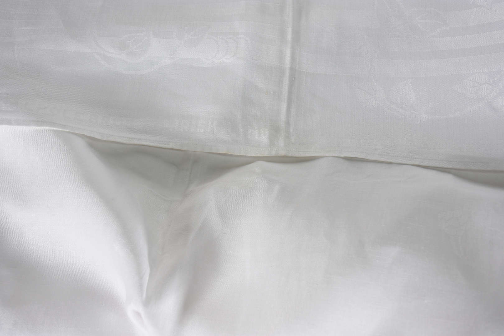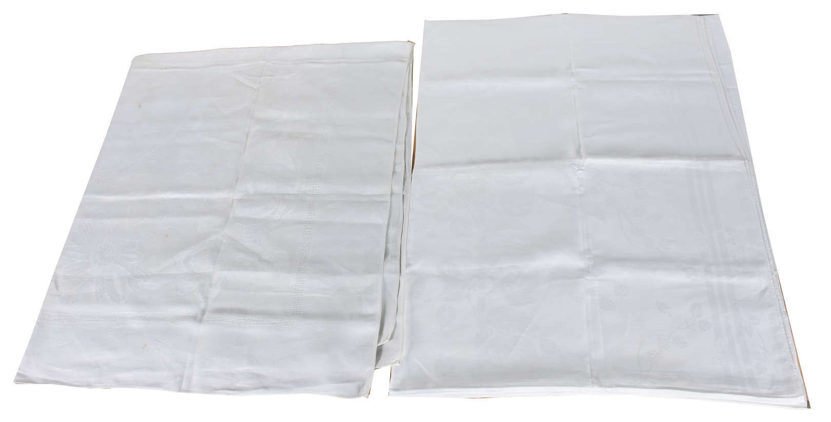 Duas toalhas de mesa de linho branco bordado (com manchas do tempo)