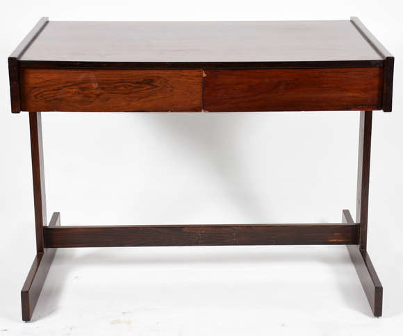 Escrivaninha de jacarandá com 2 gavetas (folheado soltando nas gavetas).