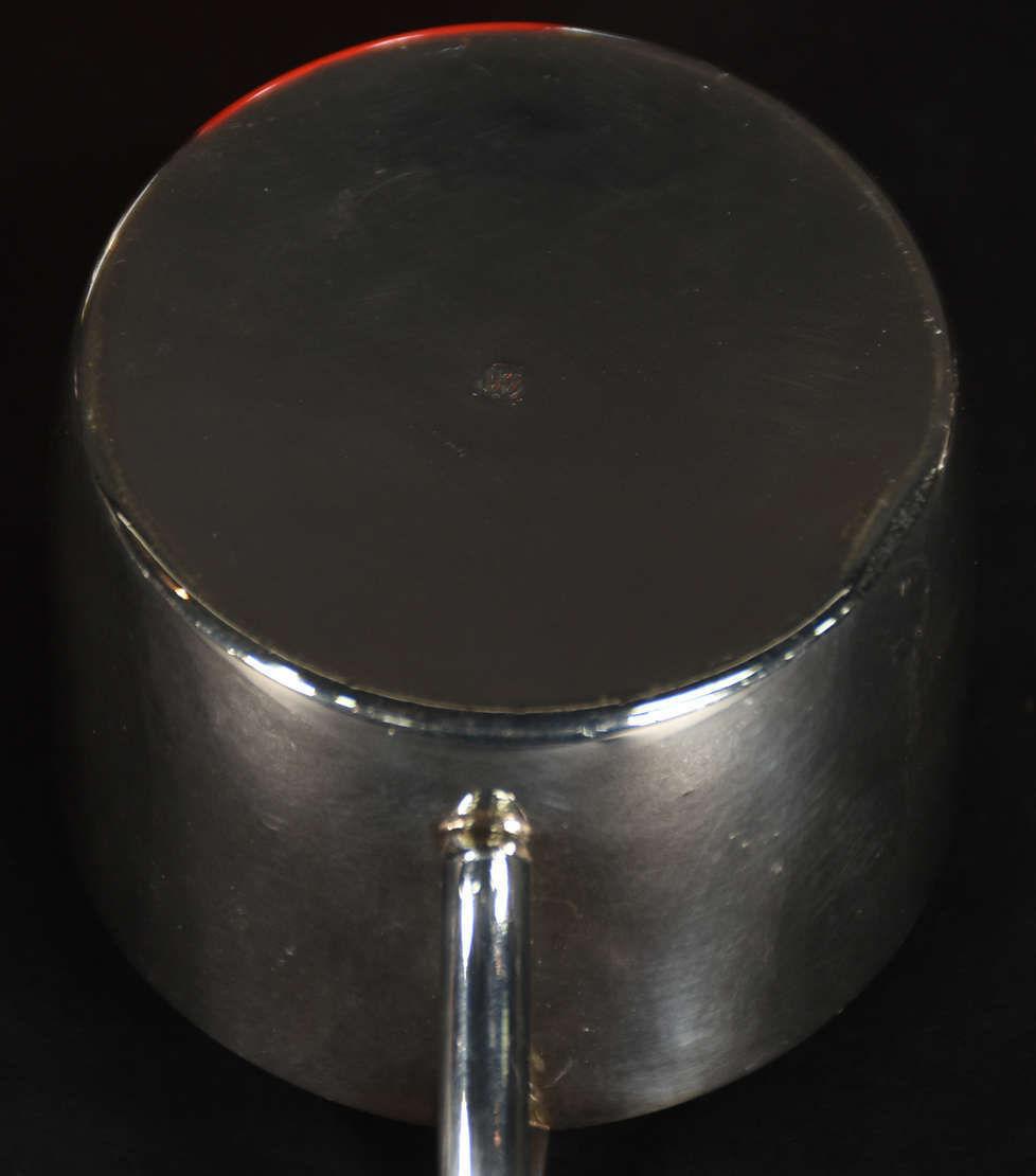 Duas peças de metal prateado sendo, floreira com tulipa de cristal (faltando prato), estilo art nouveau e tinteiro co...