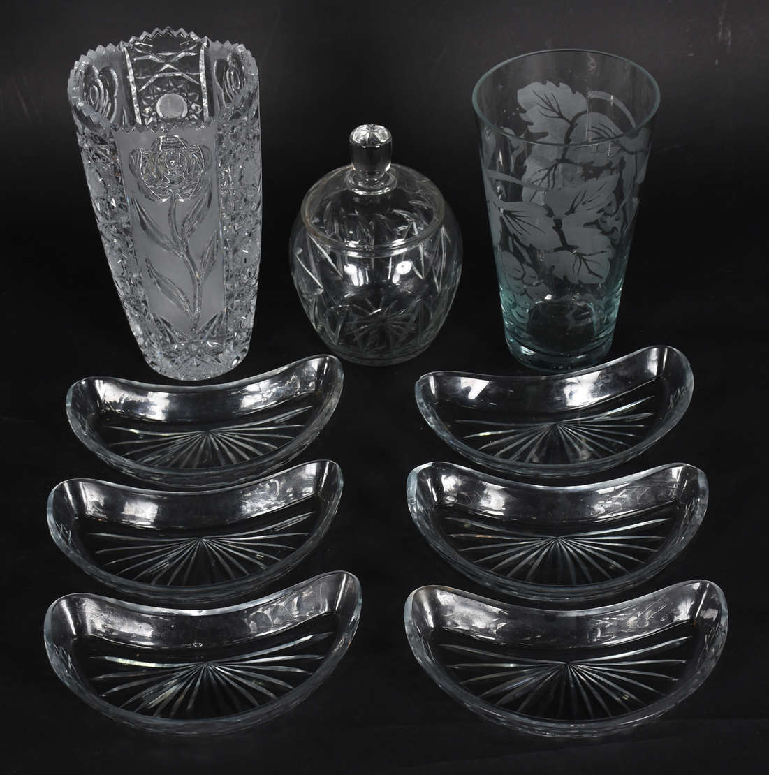 Diversas peças, sendo: 6 bolws de vidro KOSTA BODA; 12 conchas de vidro colorido; 12 conchas para coquille Saint Jacq...