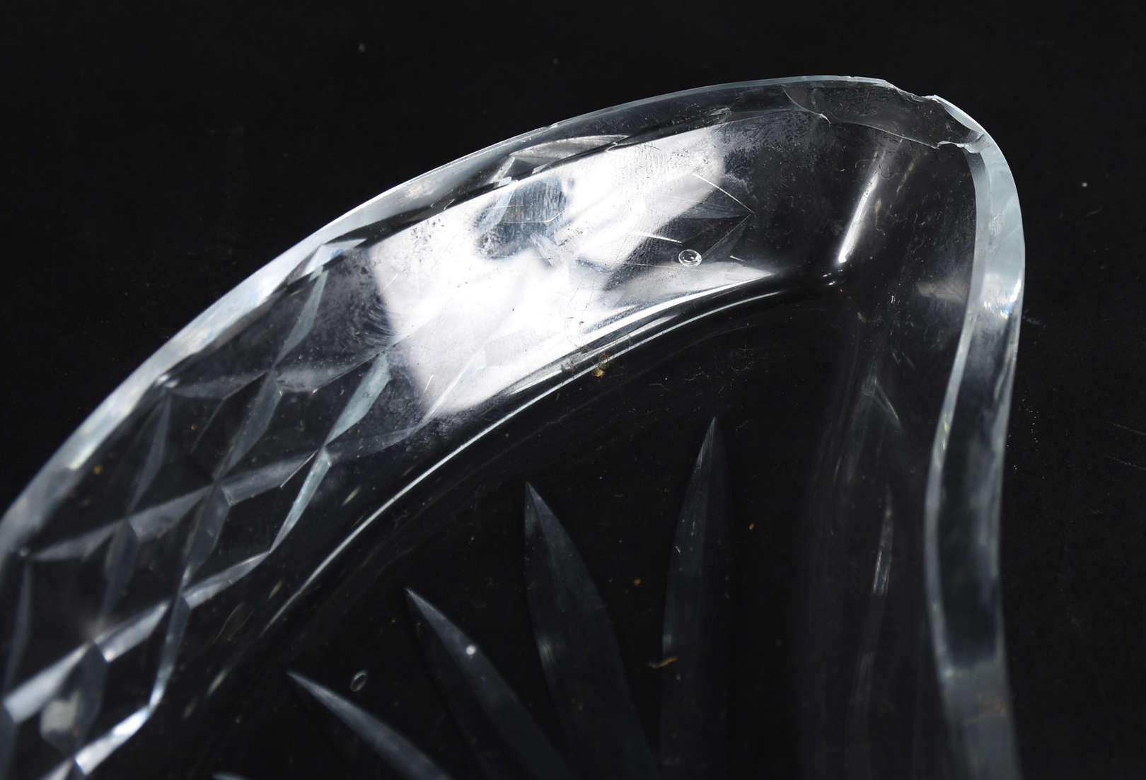 Garrafa de cristal frances ricamente lapidada, doublé lilás. Possivelmente BACCARAT.