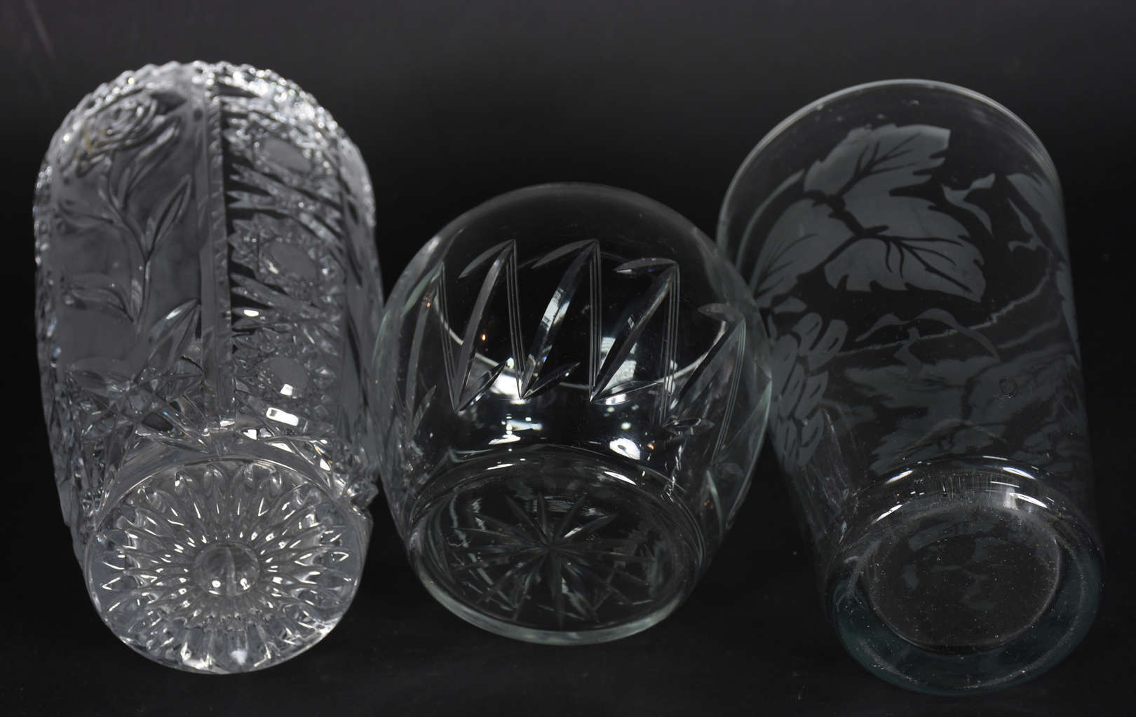 Garrafa e 5 copos de cristal double azul lapidado.