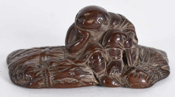 Netsuke em madeira com laca representando o Bodidharma em meditação, séc XIX.