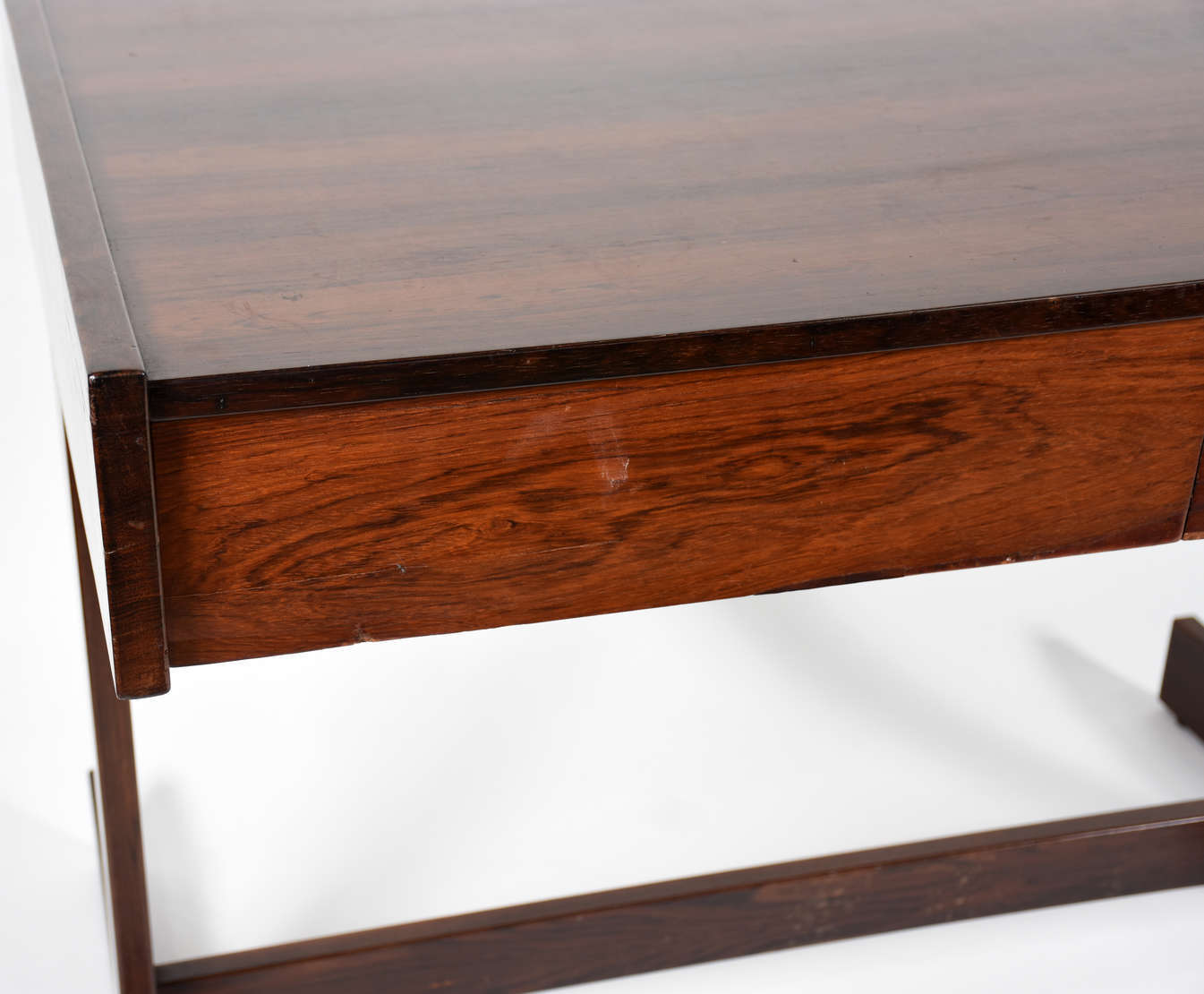 Mesa lateral de madeira folheada de jacarandá, feitio quadrada com placas de vidro oval, anos 60. (folheado soltando ...