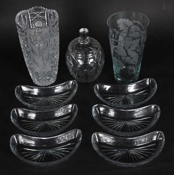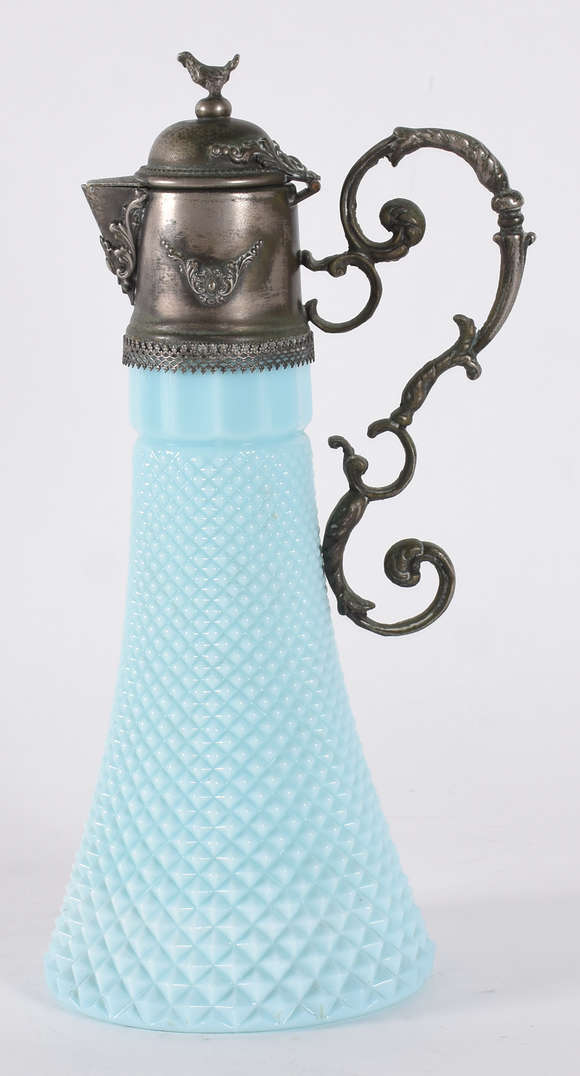 Duas garrafas de vidro trabalhado, modelos diferentes.