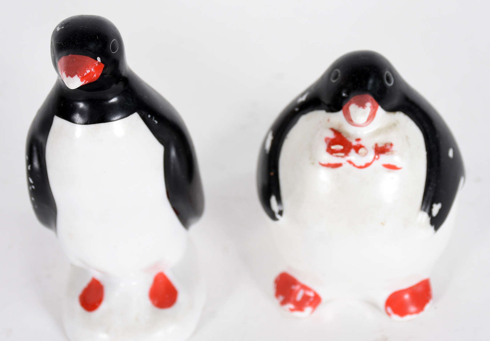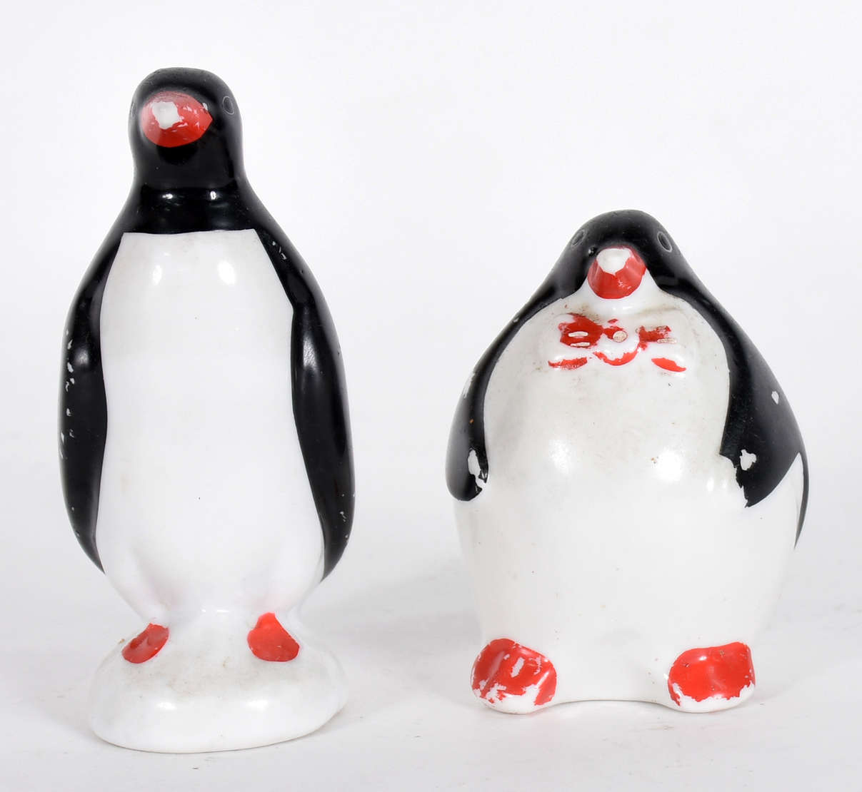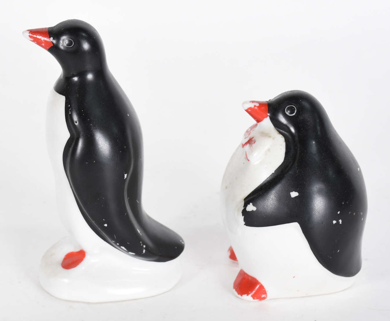 Duas estatuetas de porcelana policromada representando figura casal de camponeses.