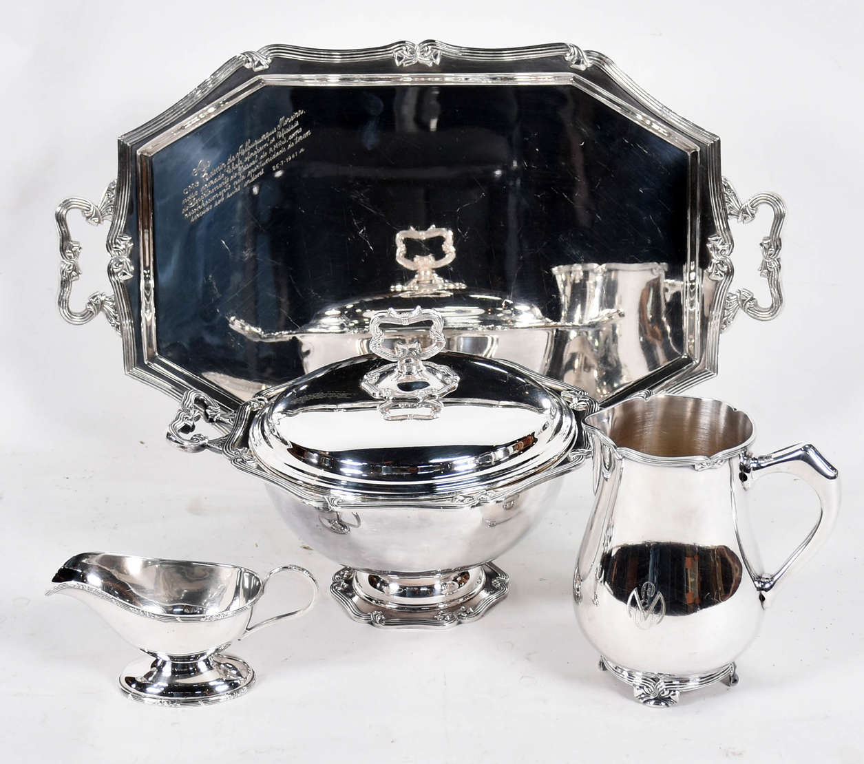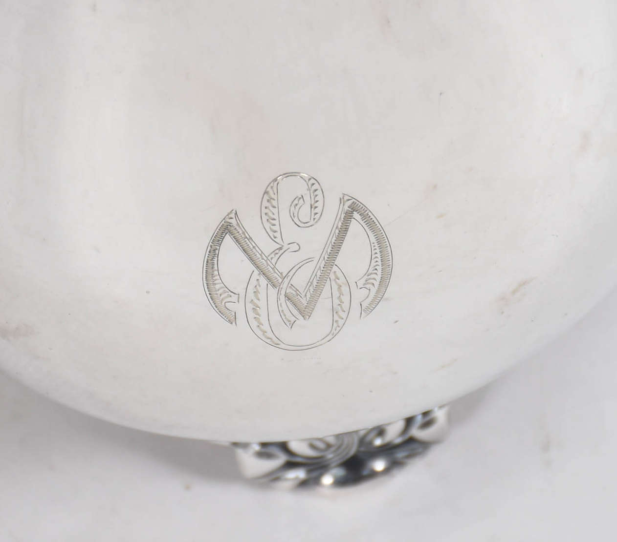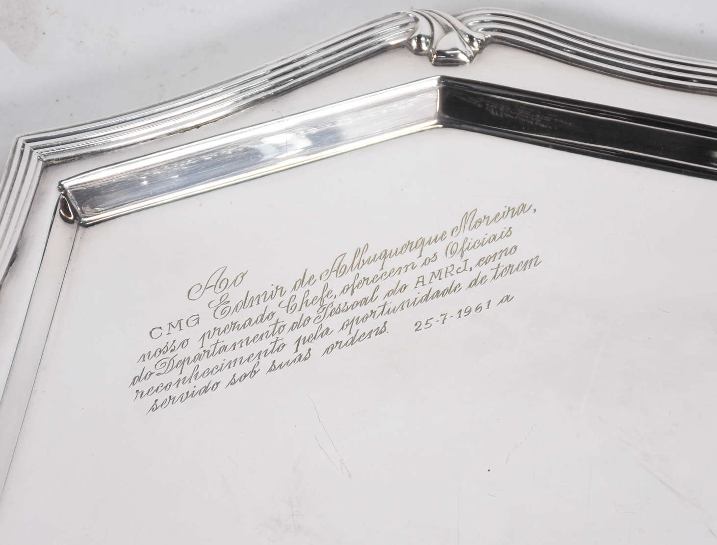 Quatro pequenas peças de prata, sendo: lâmpada feitio oriental; berço de espivitadeira; cigarreira e cinzeiro.