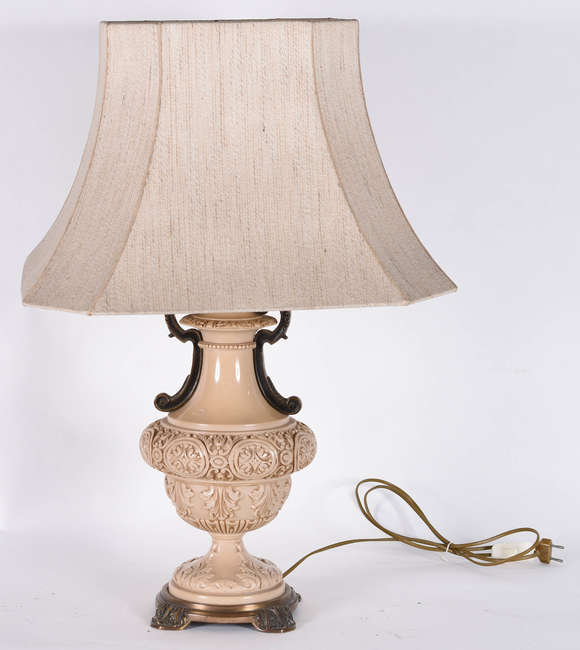 Abatjour de resina com cúpula bege