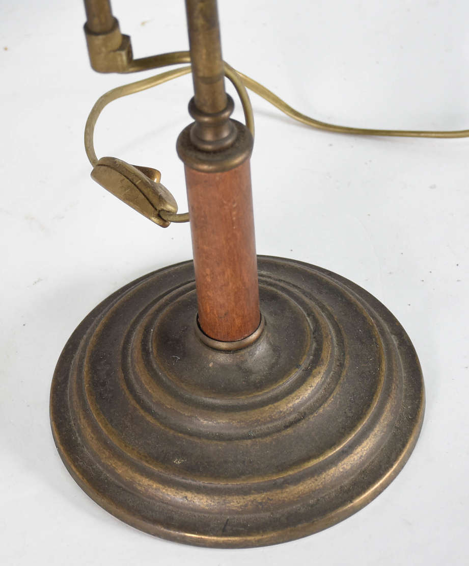 Abatjour de bronze representando figura feminina, manga de vidro feitio babado.