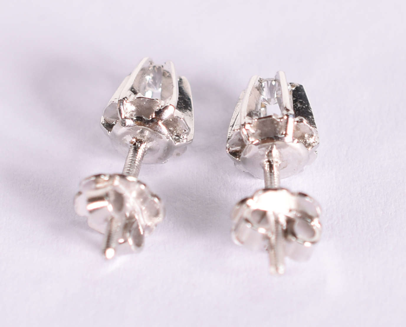 Par de brincos de ouro branco com 2 brilhantes de aproximadamente 0,08 cada. no total de 0,16 cts. (Por motivo de seg...