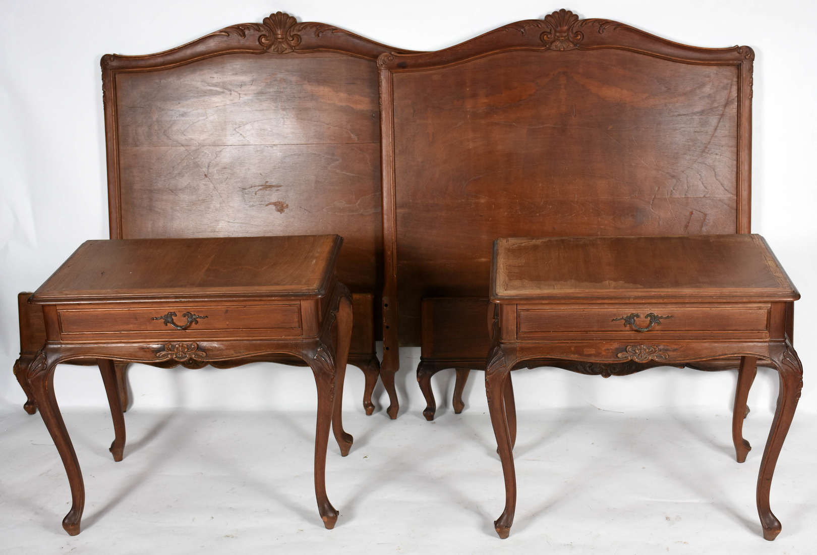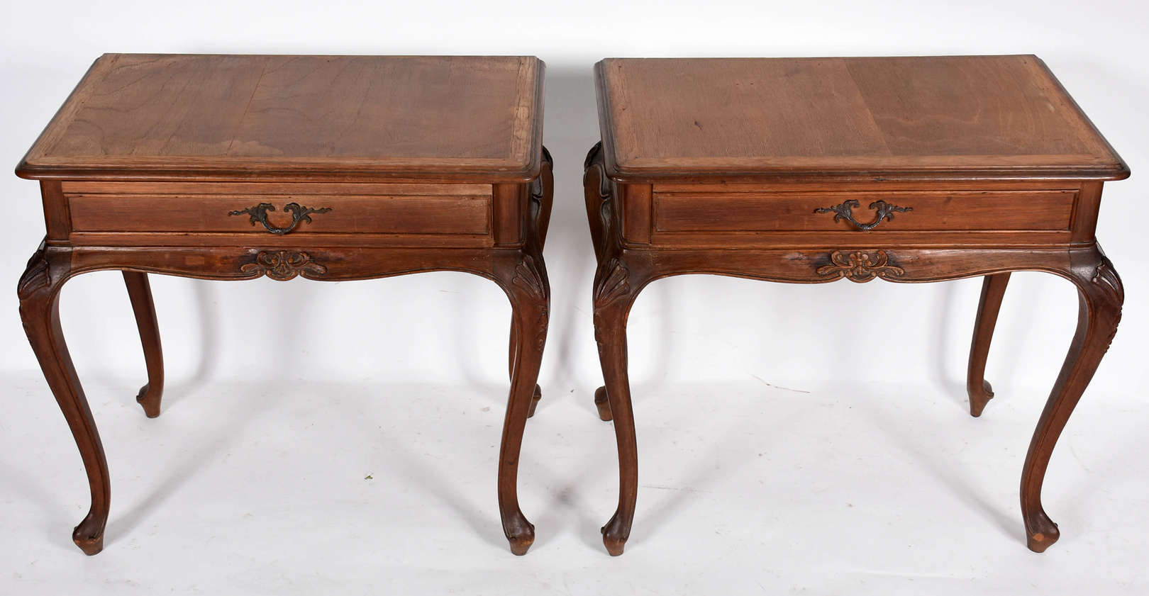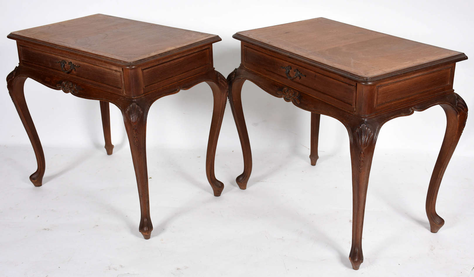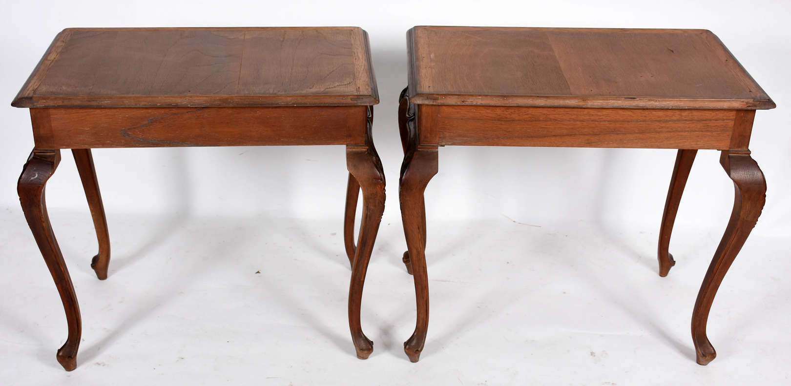 Duas mesas redondas de madeira nobre.