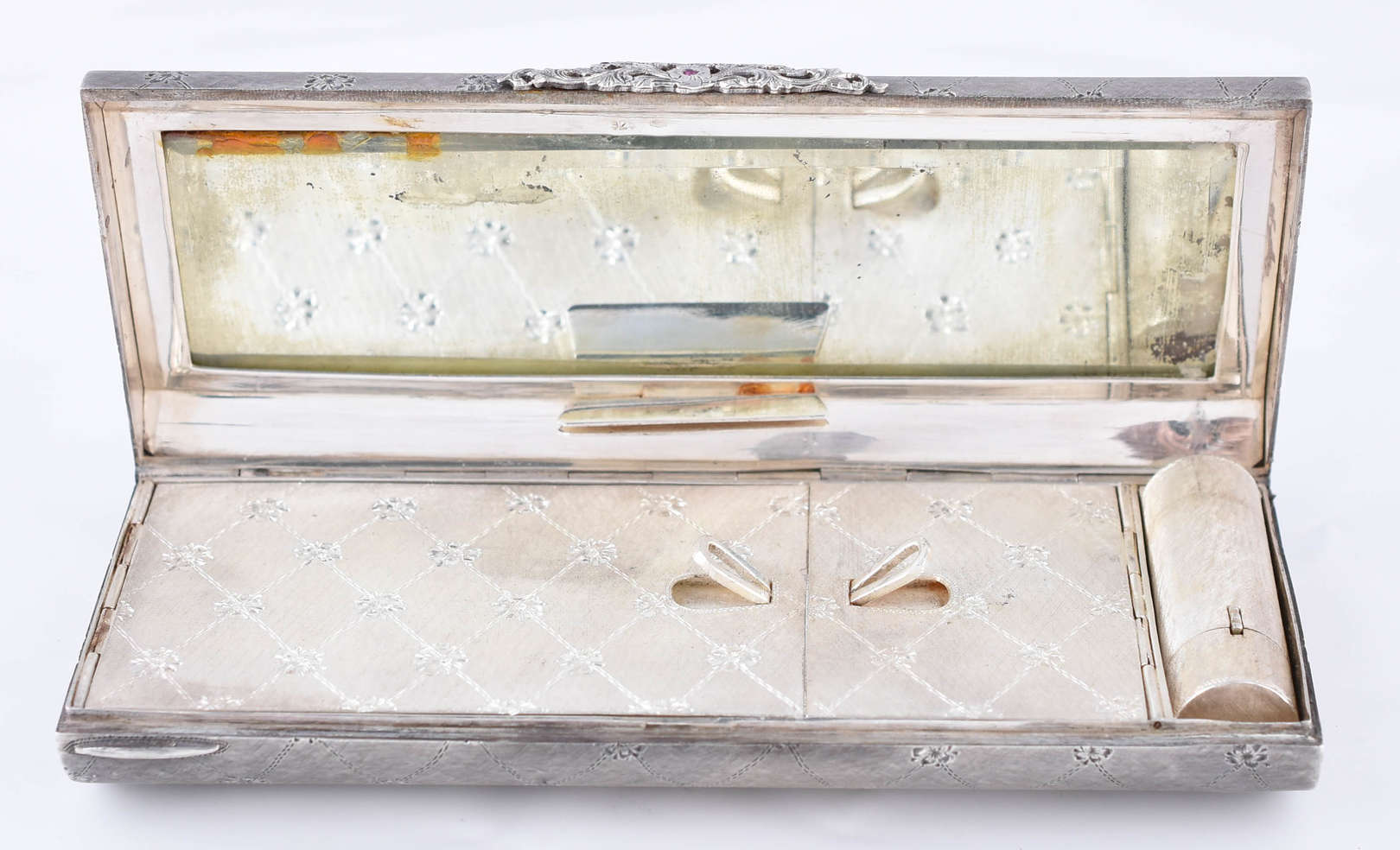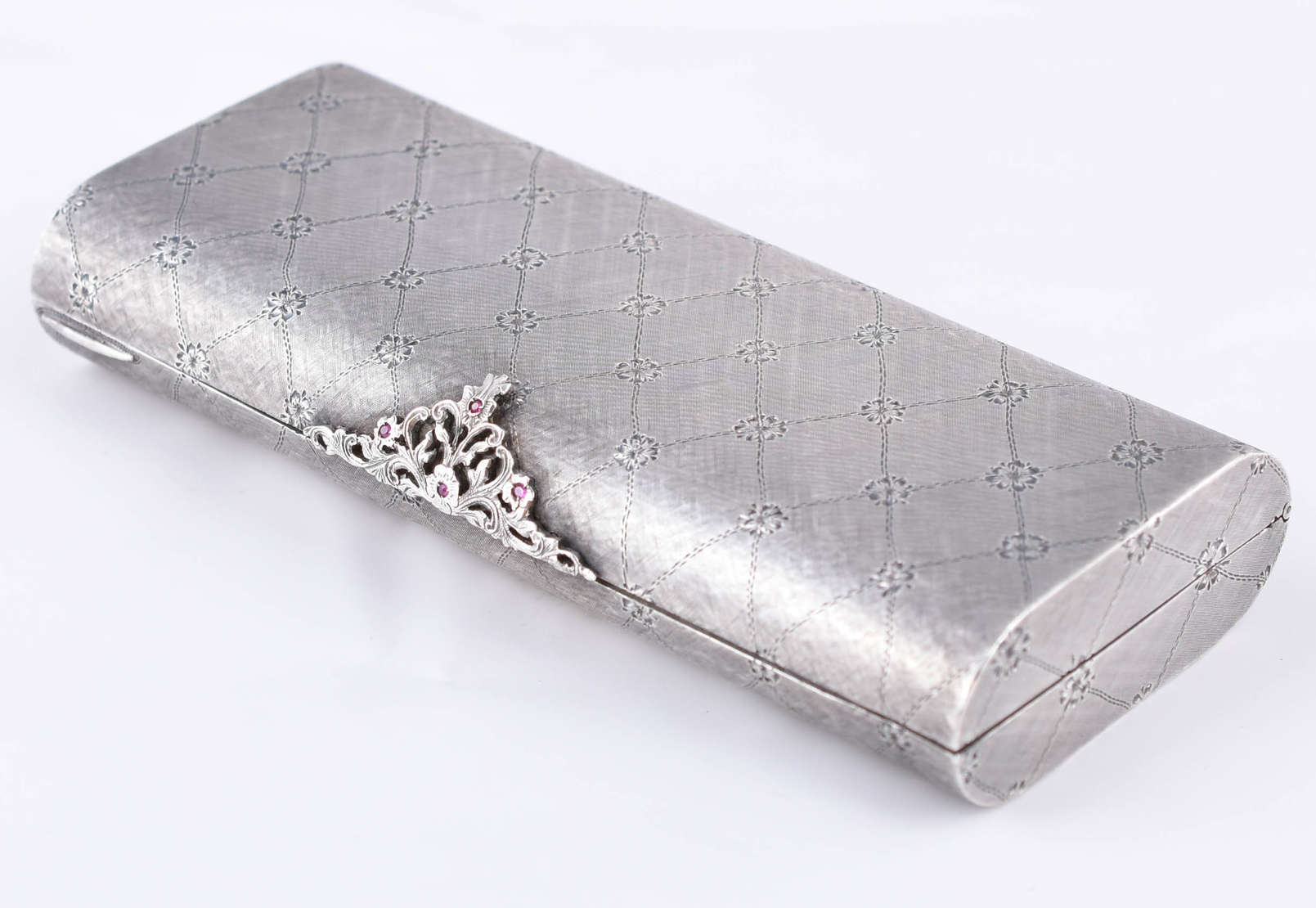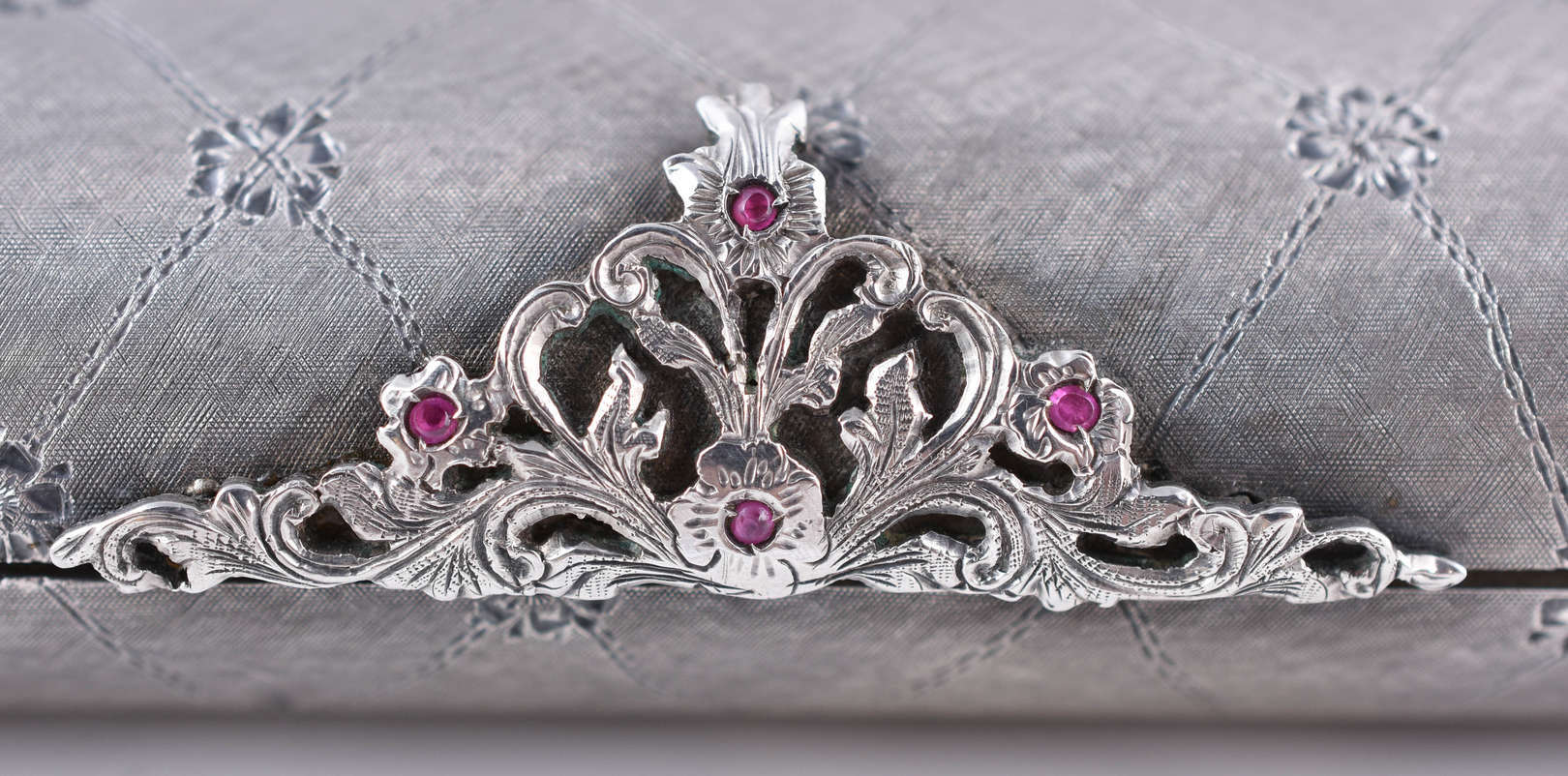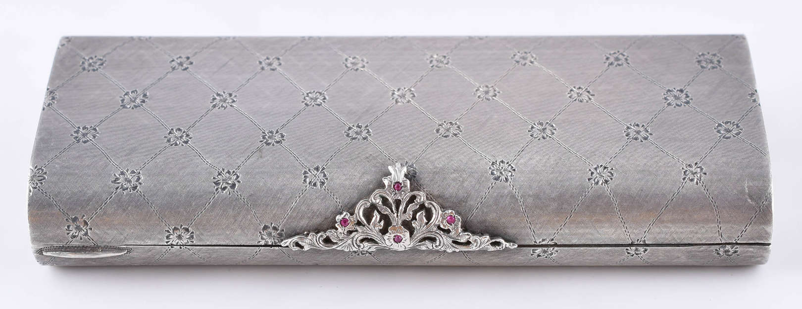 Gargantilha de ouro branco com pingente no feito de cruz, com rubis e safiras brancas (por motivos de segurança a pe...
