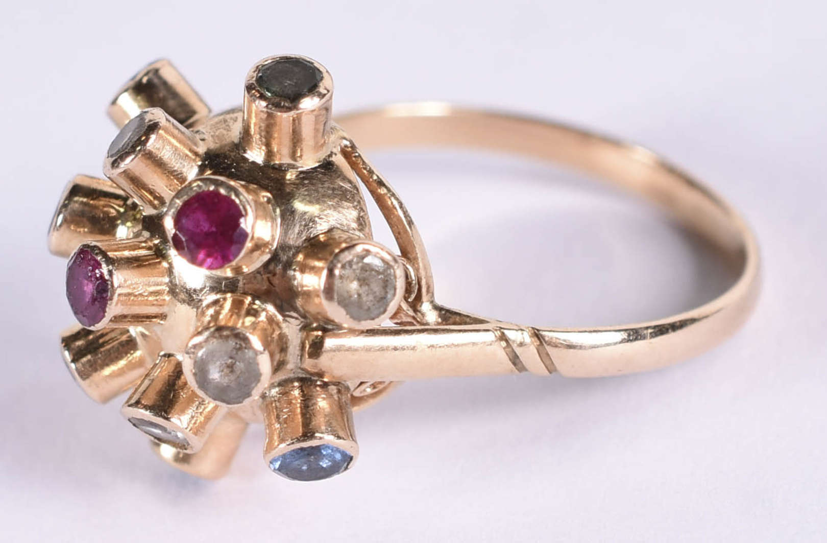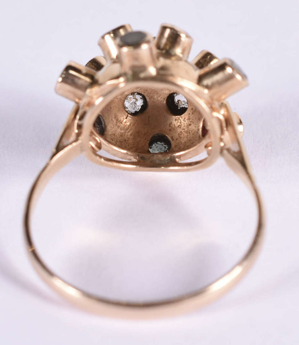 Anel de ouro amarelo 18 k feitio de coração cabuchão e rubi, topázio amarelo e mini brilhantes em volta, aro 20.