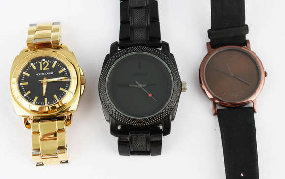 Três relógios sendo, 1 Monte Carlo, 1 Aero e 1 Chillibeans.