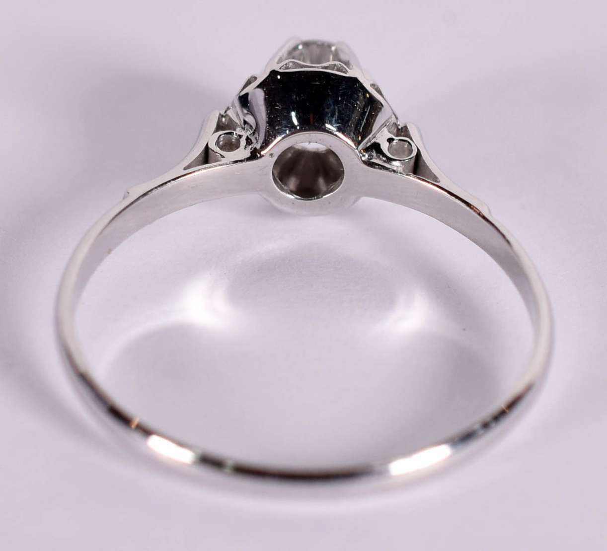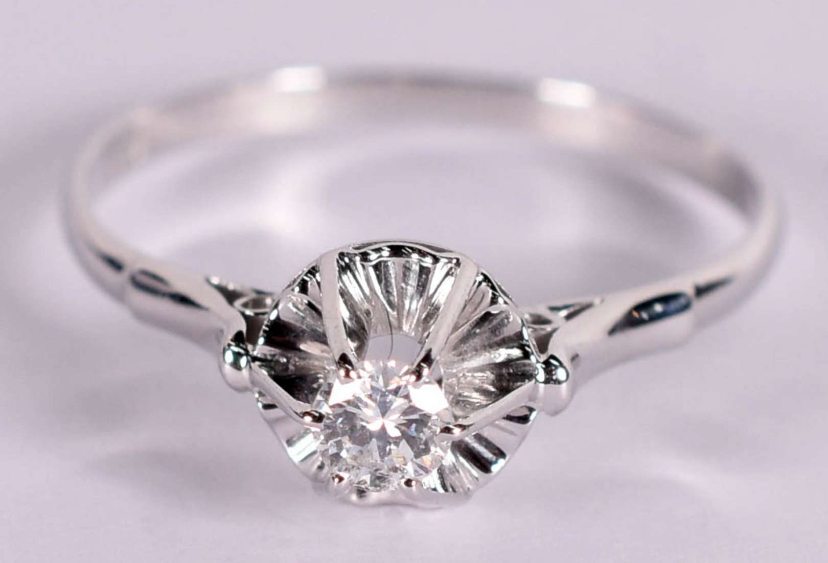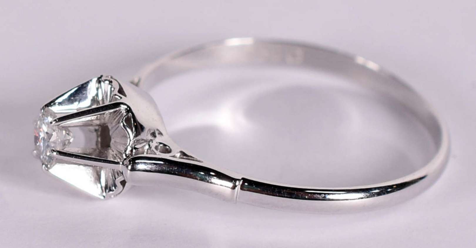 Anel ouro branco com 5 brilhantes, aro 16. (Por questão de segurança a peça não se encontra na loja).
