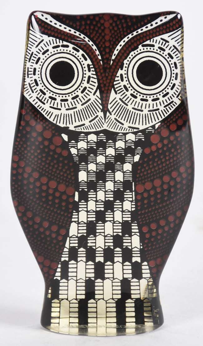 Estatueta de resina de poliéster representando cabeça de gato, assinada.